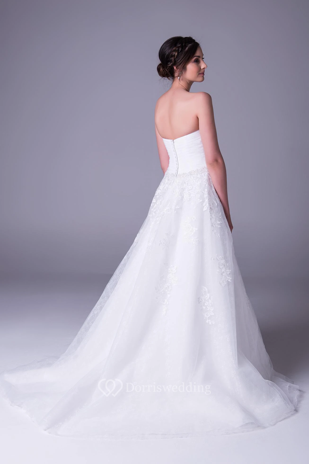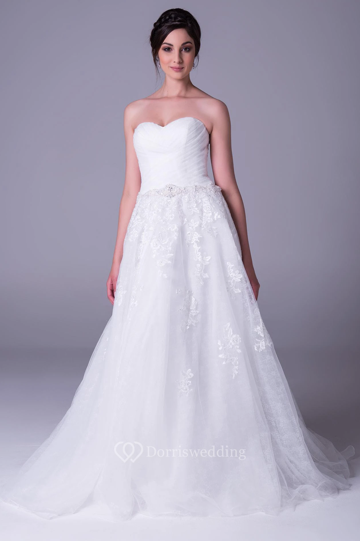 A-Line Maxi Appliqued Sweetheart Tulle Wedding Dress With Criss Cross And Waist Jewellery