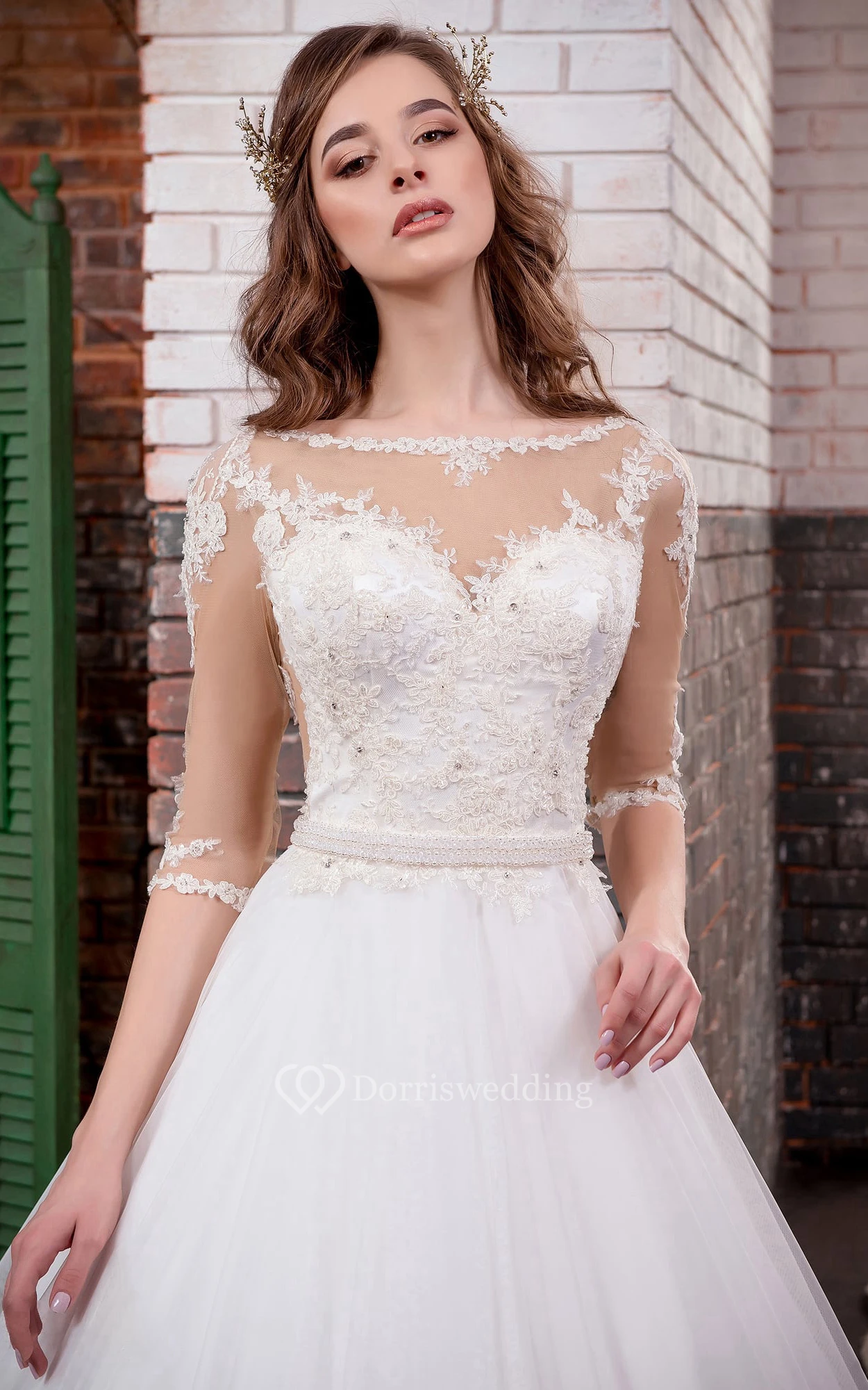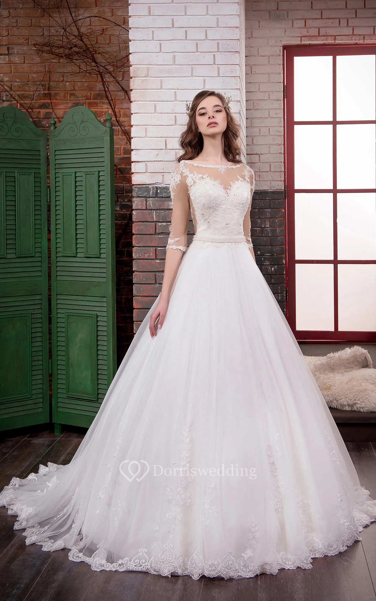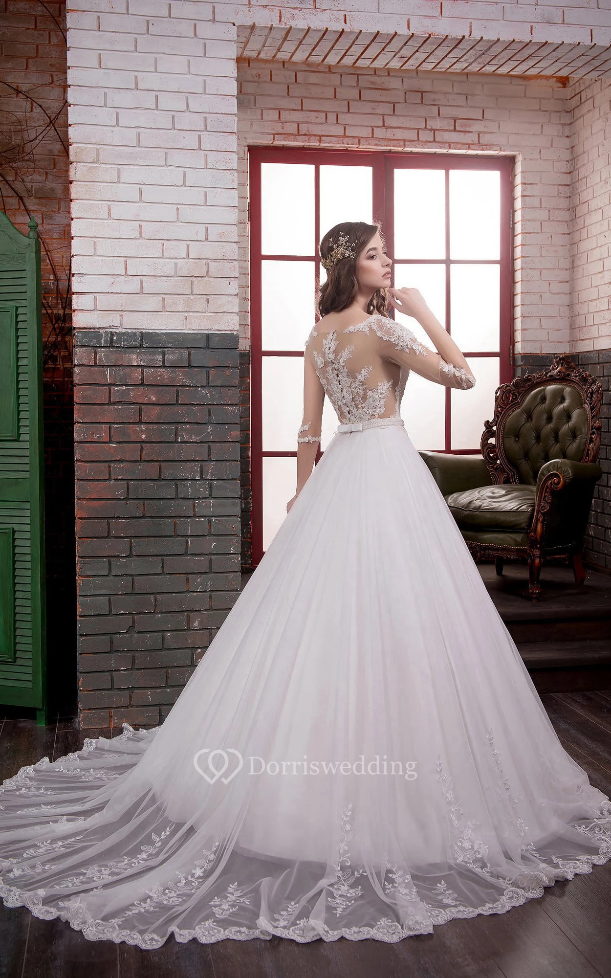 • Hemline/Train: Floor-length, Chapel Train