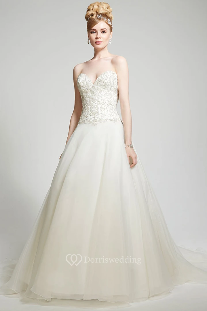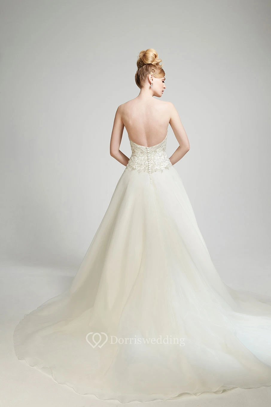 A-Line Maxi Beaded Sweetheart Sleeveless Wedding Dress With Chapel Train And Backless Style