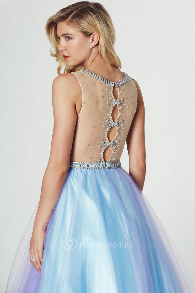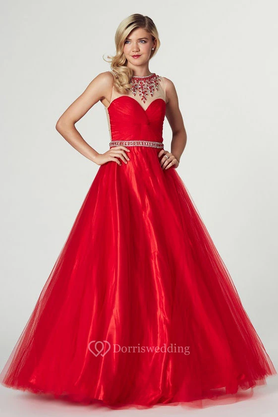 A-Line Maxi High Neck Sleeveless Ruched Tulle Prom Dress