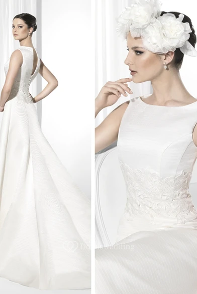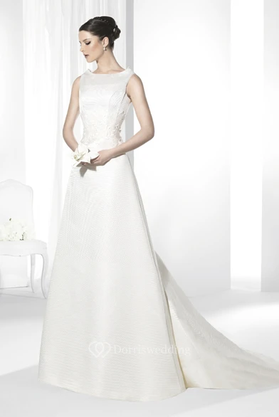 A-Line Maxi Sleeveless Scoop-Neck Satin Wedding Dress