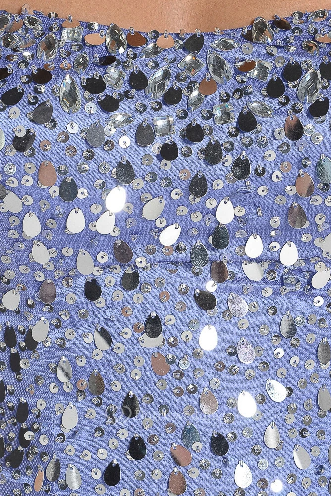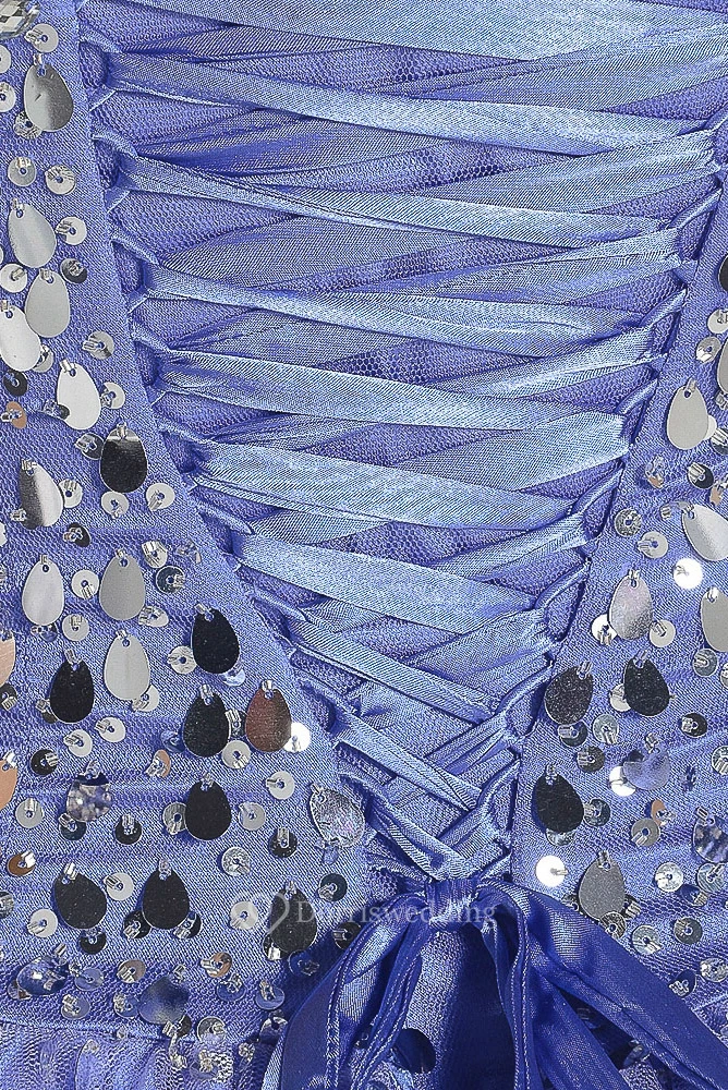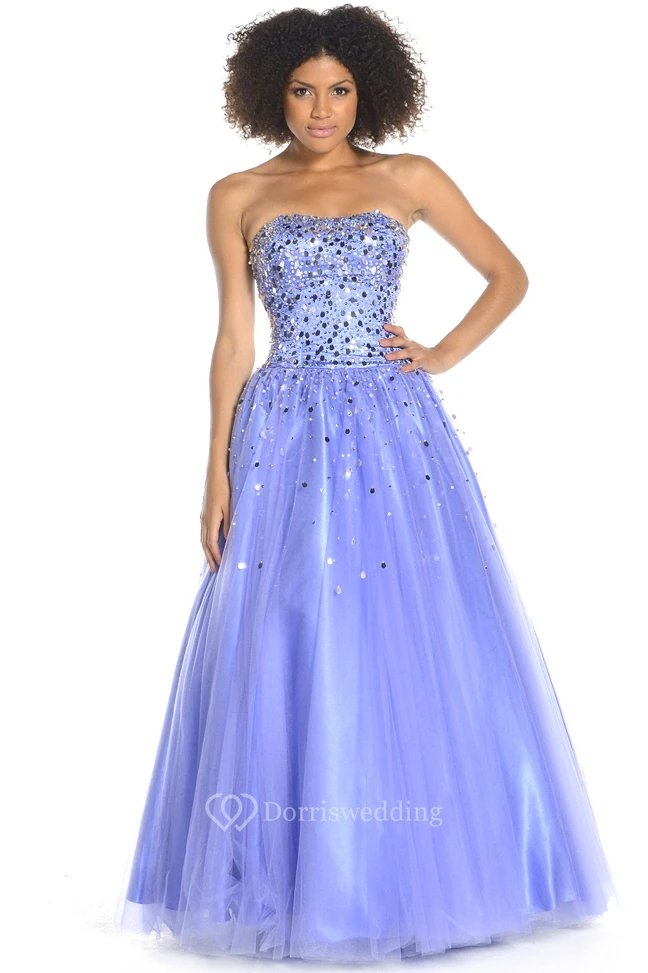 A-Line Maxi Strapless Sequined Tulle Prom Dress With Lace-Up