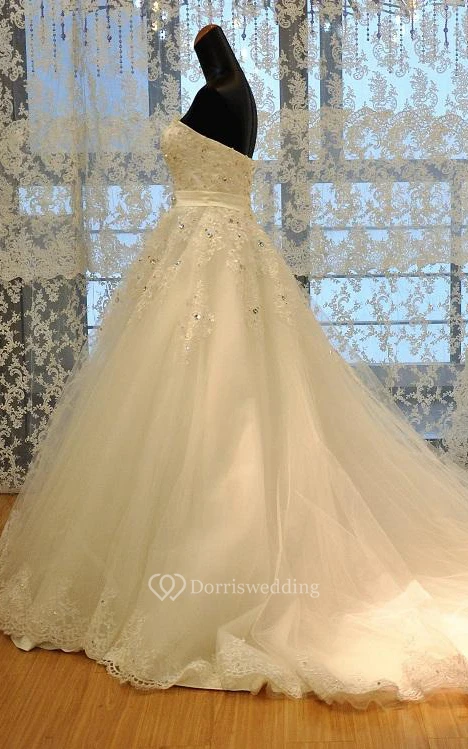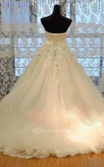 A-Line Maxi Sweetheart Beading Appliques Corset Back Keyhole Tulle Lace Dress