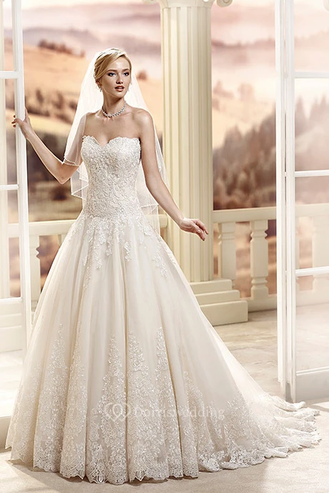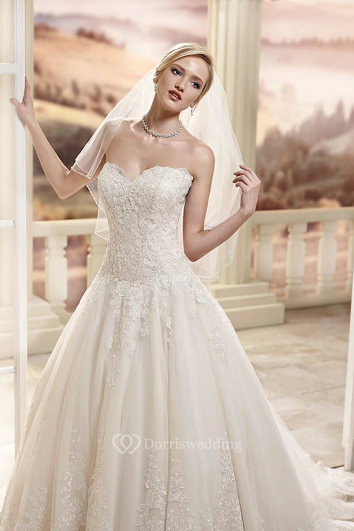 A-Line Maxi Sweetheart Lace Wedding Dress With Appliques And Court Train