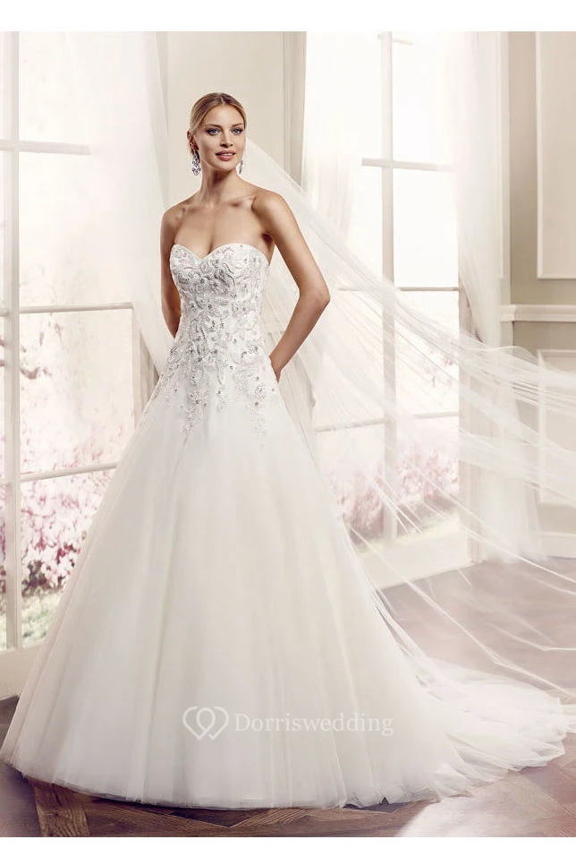 A-Line Maxi Sweetheart Sleeveless Beaded Tulle Wedding Dress