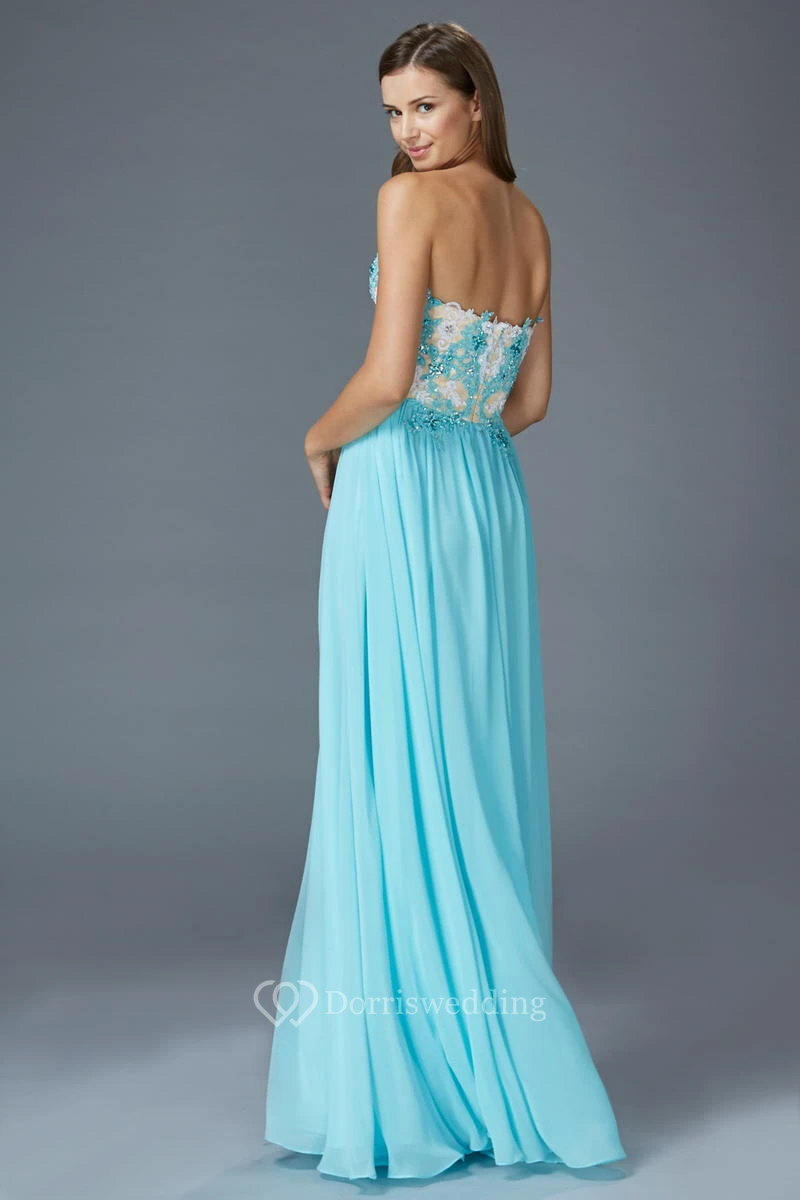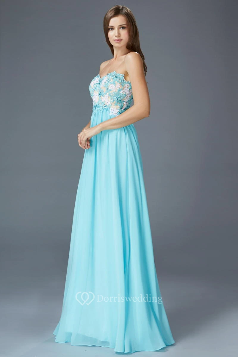 A-Line Maxi Sweetheart Sleeveless Empire Chiffon Backless Dress With Appliques