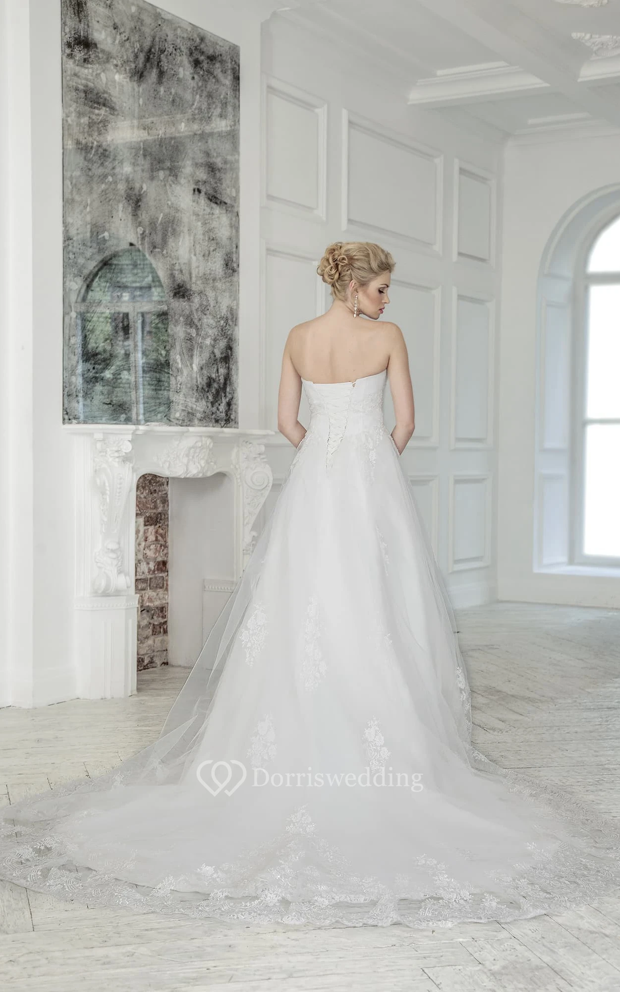 • Hemline/Train: Floor-length, Sweep/Brush Train
