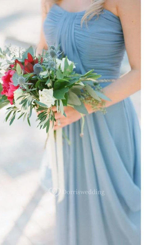 A-line Maxi Sweetheart Sleeveless Pleats Chiffon Dress