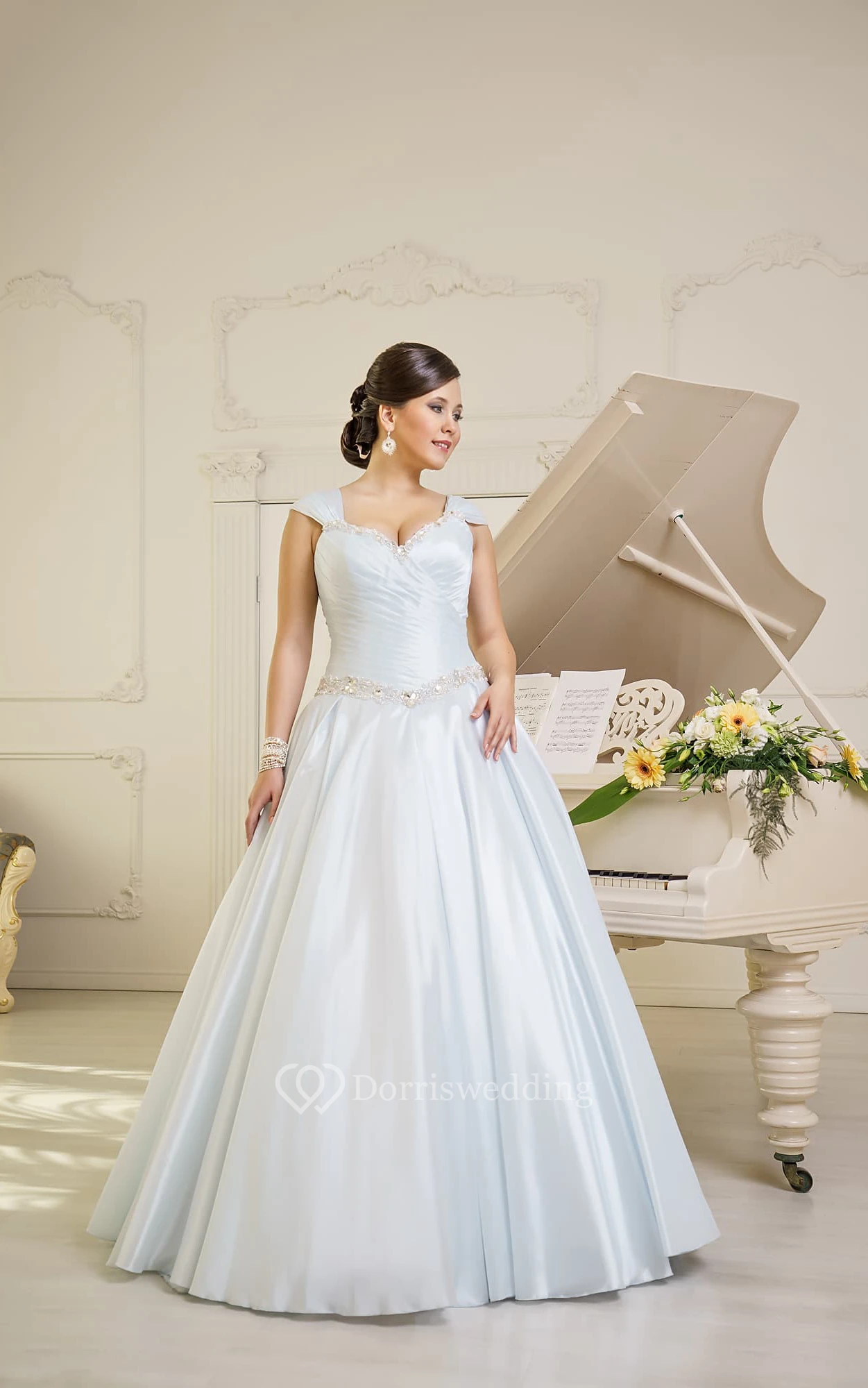 • Hemline/Train: Floor-length