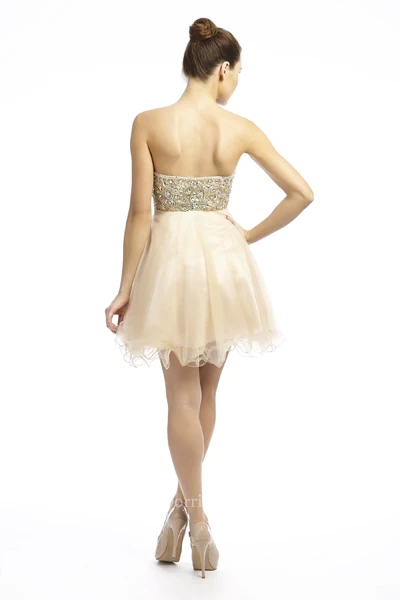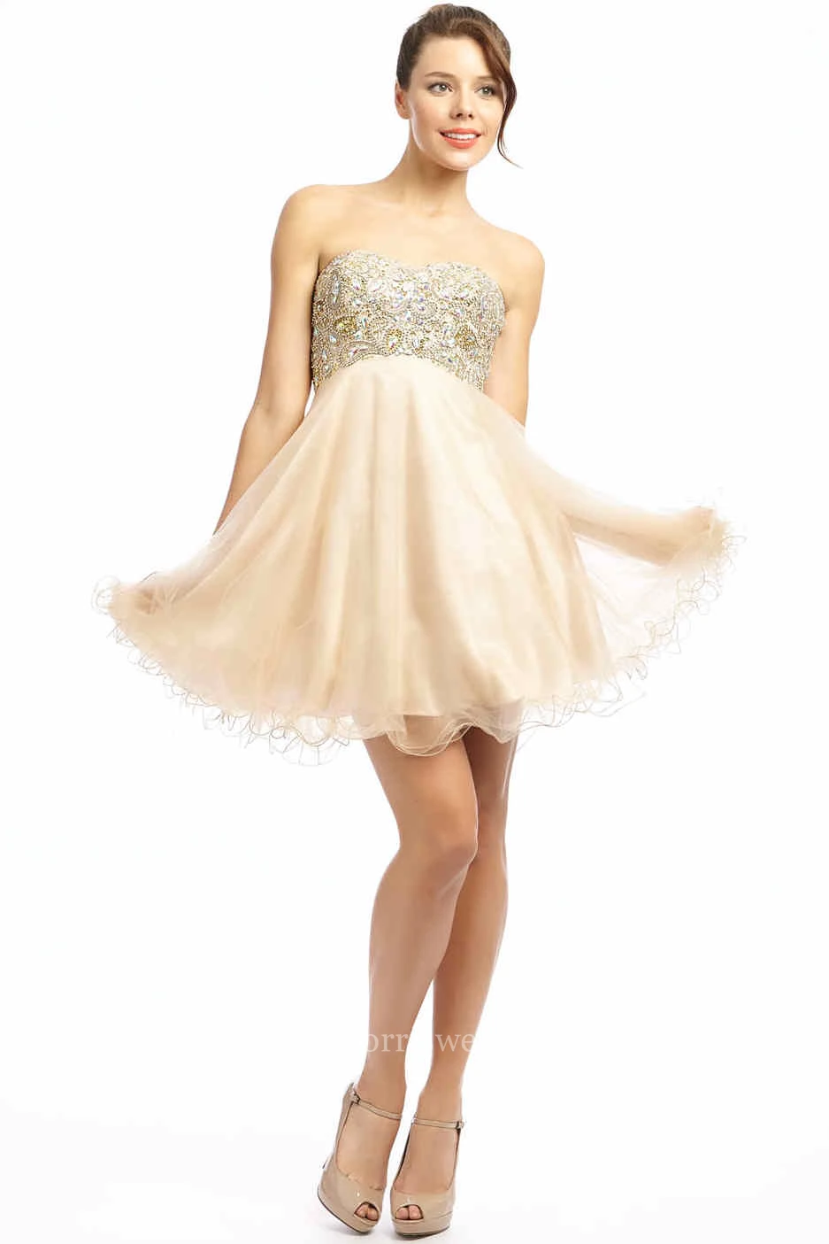 A-Line Mini Beaded Sleeveless Sweetheart Tulle Prom Dress