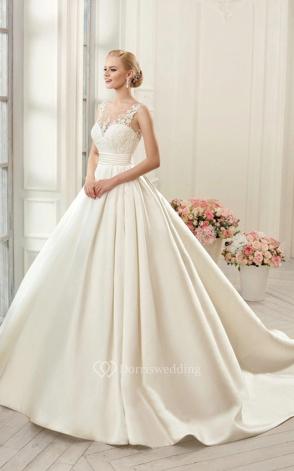 The lace top wedding ball gown is perfect! It is really flattering on me and I think most body types. It got here quickly and when I messaged the owner, she got back to me really fast. Definitely recommend