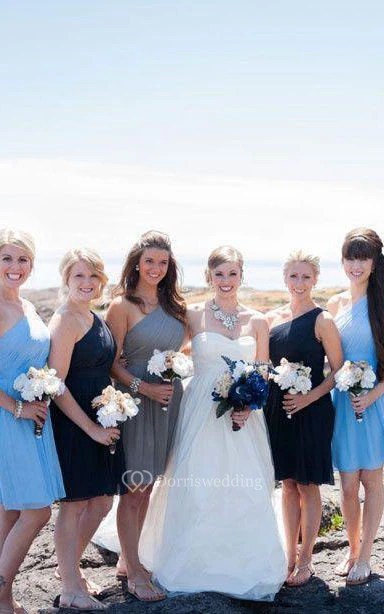 A-line Mini One-shoulder Sleeveless Bell Pleats Backless Chiffon Dress