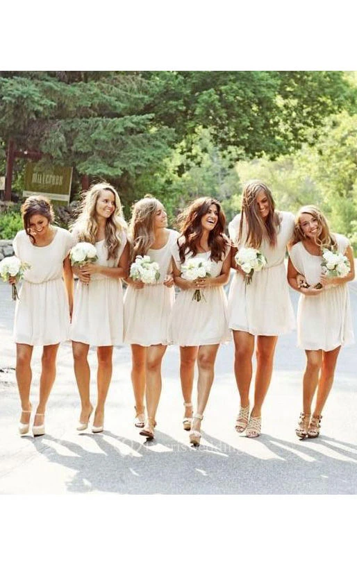 A-line Mini Scoop Pleats Zipper Chiffon Dress