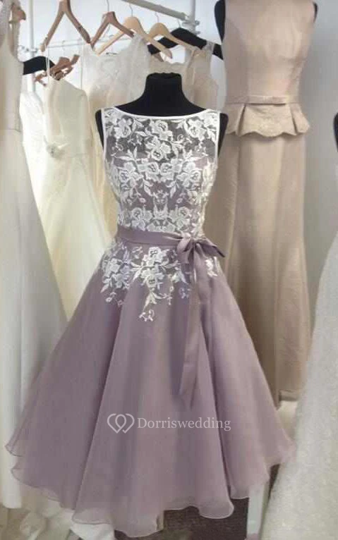 A-line Mini Sleeveless Lace Organza Dress with Bateau Neck