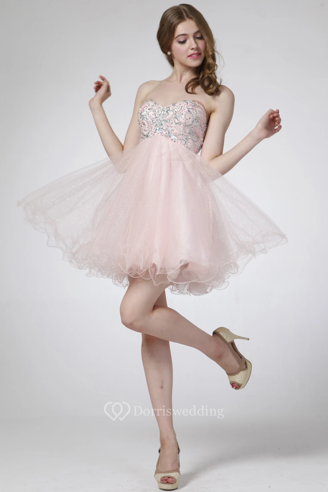 A-Line Mini Sweetheart Sleeveless Empire Tulle Dress With Beading