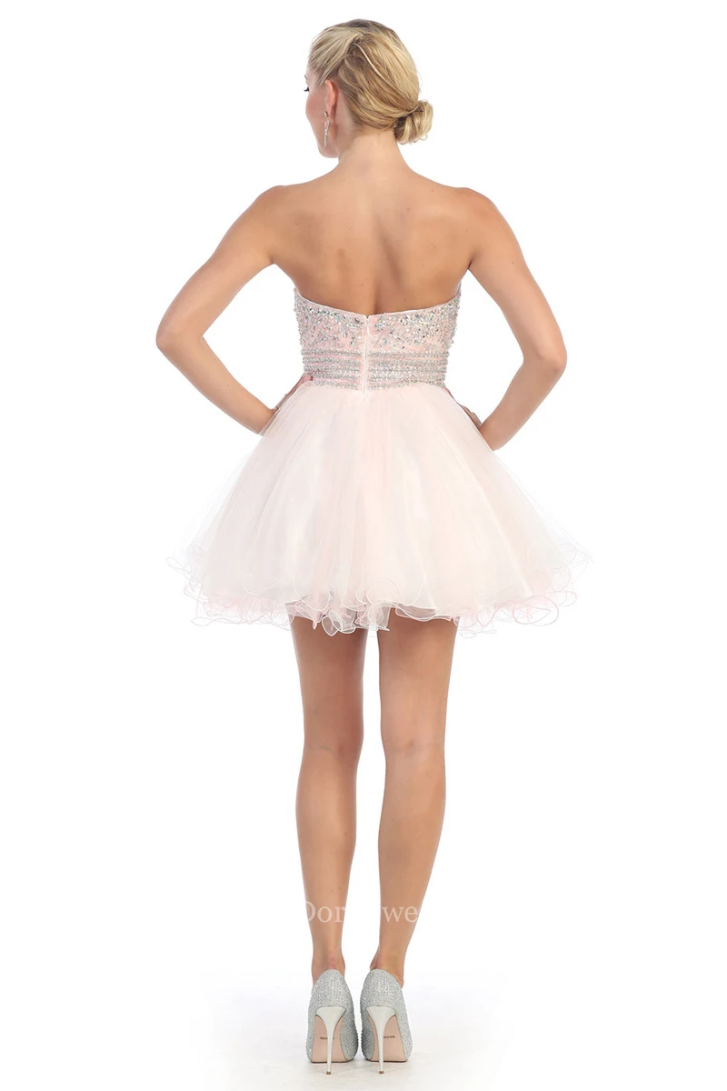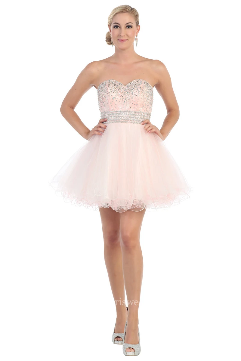 A-Line Mini Sweetheart Tulle Backless Dress With Ruffles And Waist Jewellery