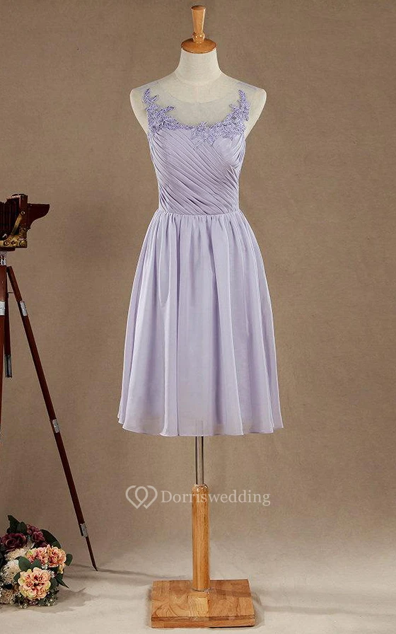 A-line Mini Tea-length Chiffon&Lace&Satin Dress