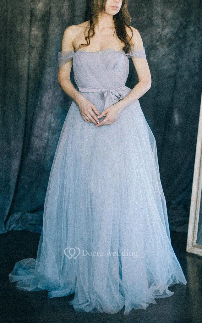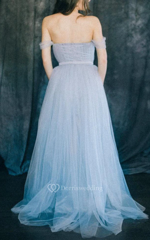 A-line Off-the-shoulder Tulle&Lace Dress With Corset Back