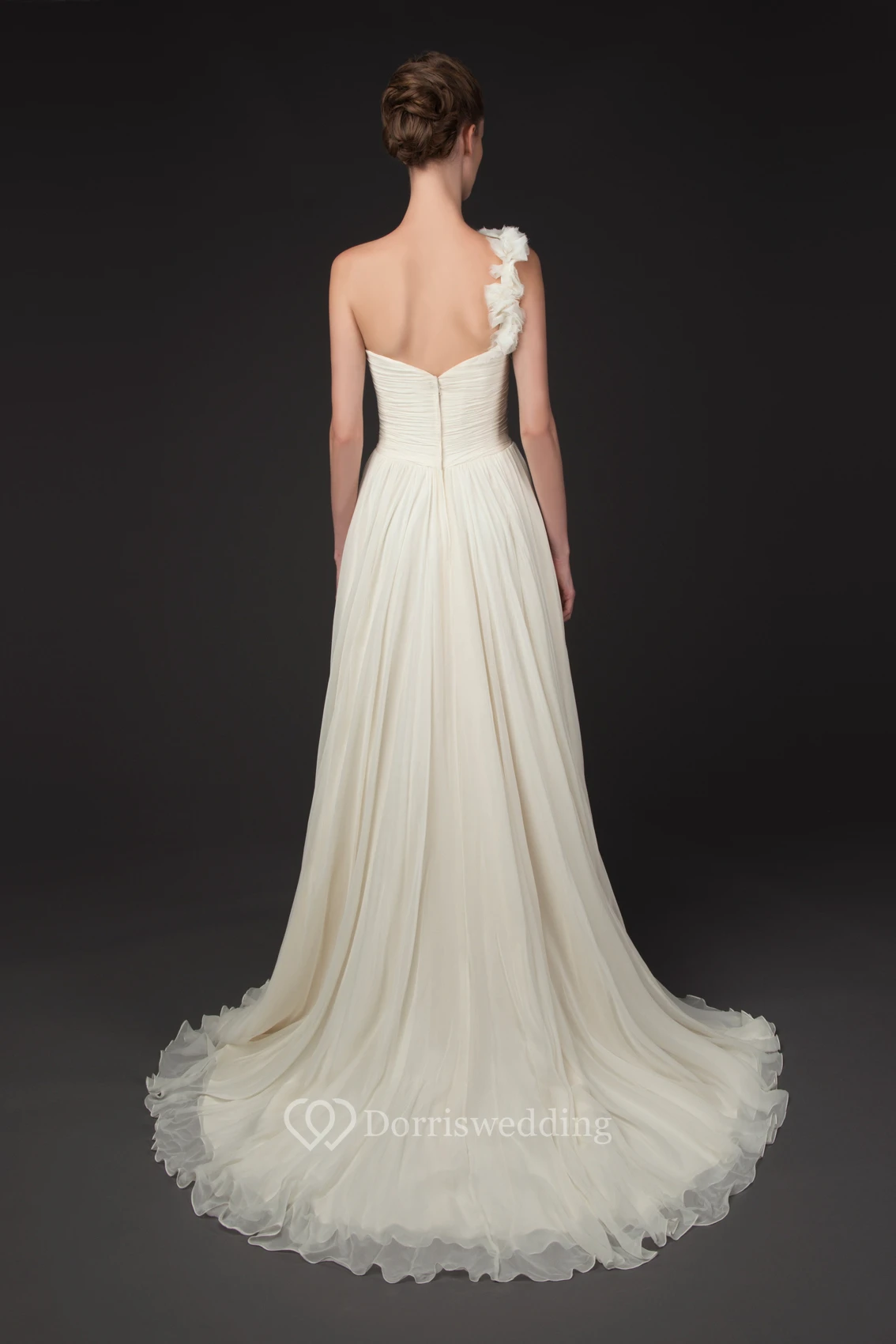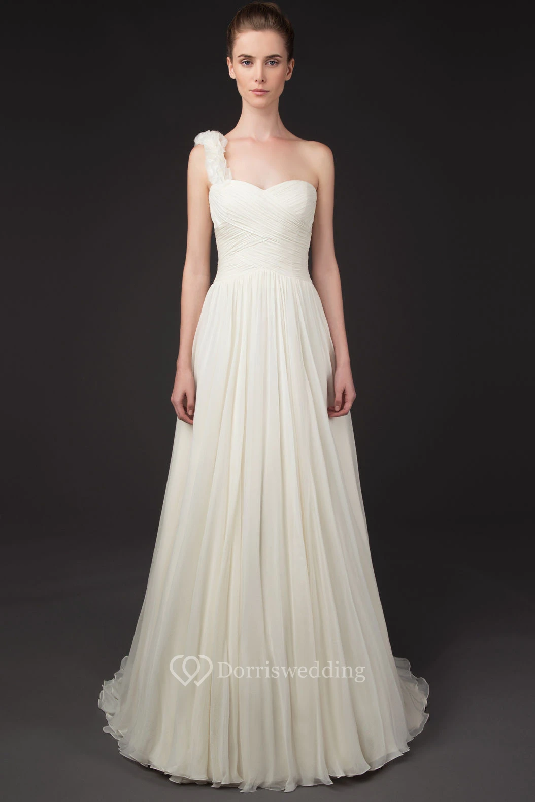 A-Line One-Shoulder Criss-Cross Sleeveless Chiffon Wedding Dress
