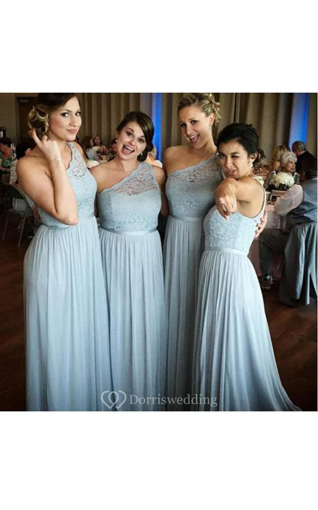 A-line One-shoulder Sleeveless Bell Backless Chiffon Lace Dress