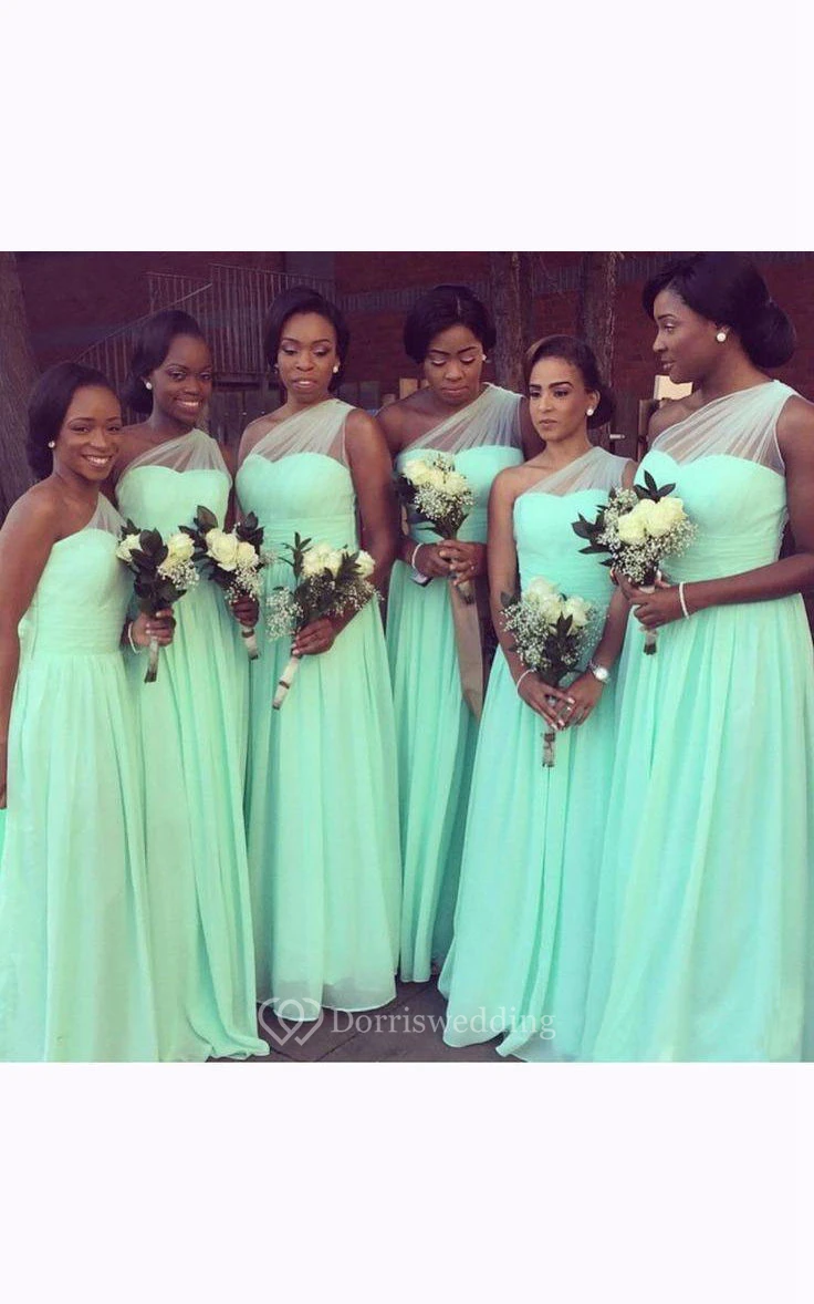 A-line One-shoulder Sleeveless Ruffles Floor-length Chiffon Dress