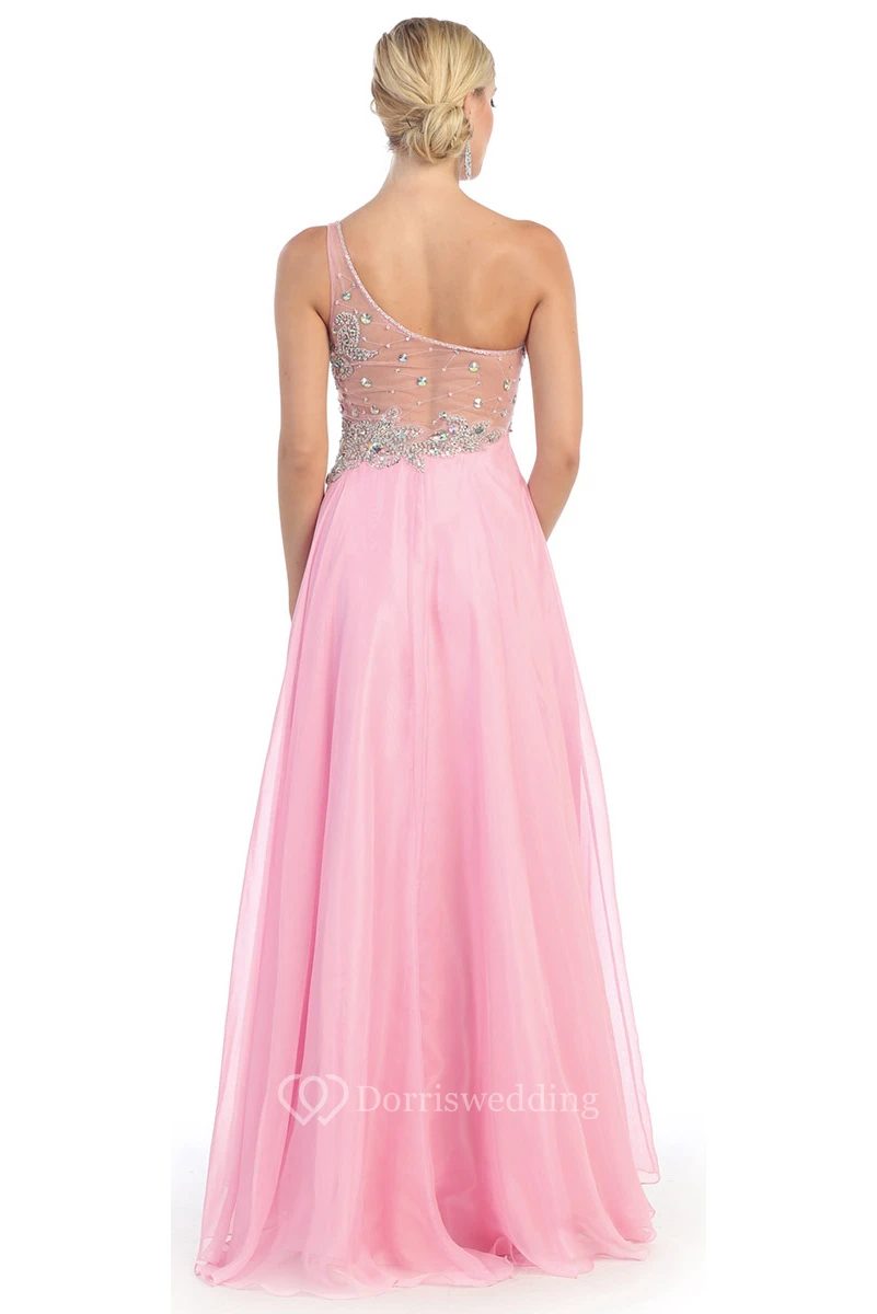 A-Line One-Shoulder Sleeveless Tulle Illusion Dress With Beading And Pleats