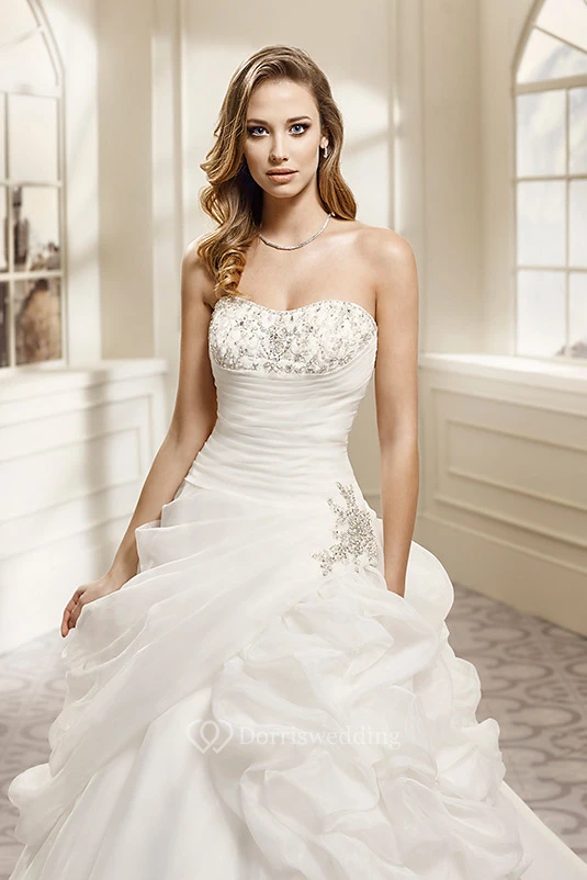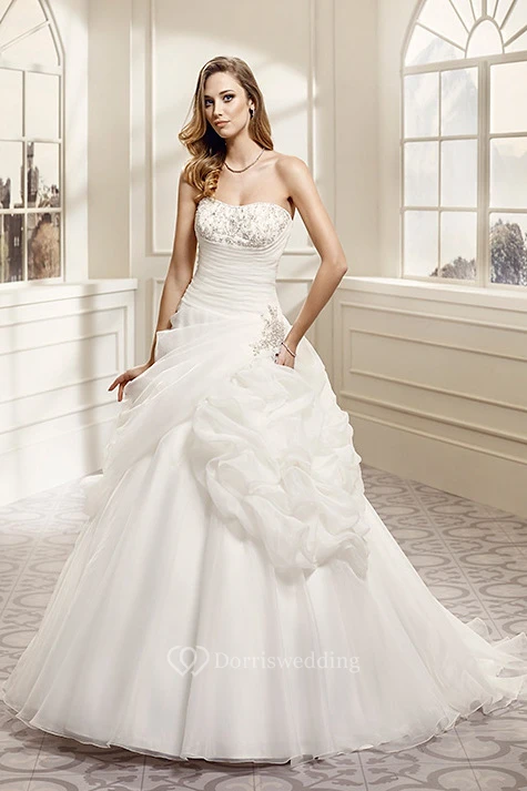 A-Line Pick-Up Strapless Organza Wedding Dress With Beading