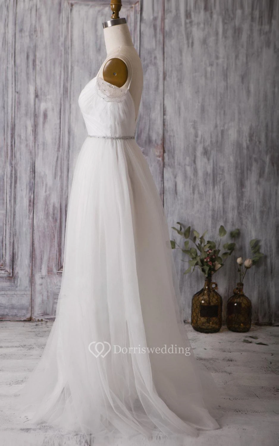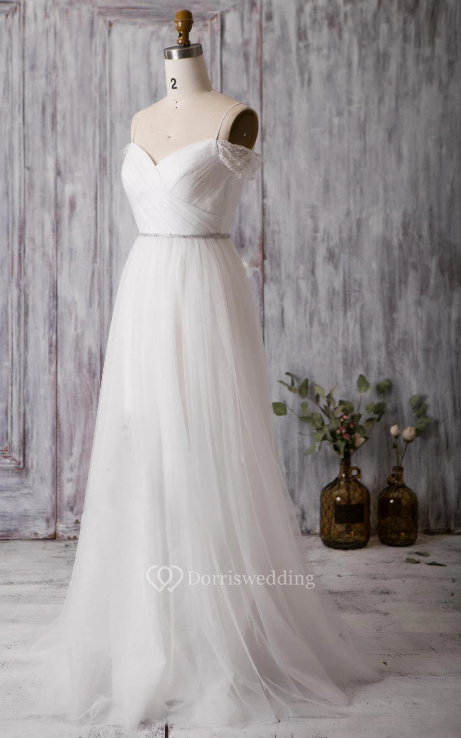 A-Line Pleated Tulle Dress With Crisscross Bodice and Spaghetti Straps