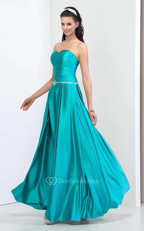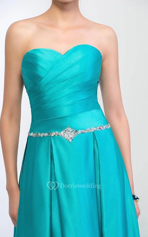 A-Line Pleats Sweetheart Sequins Beading Prom Dress