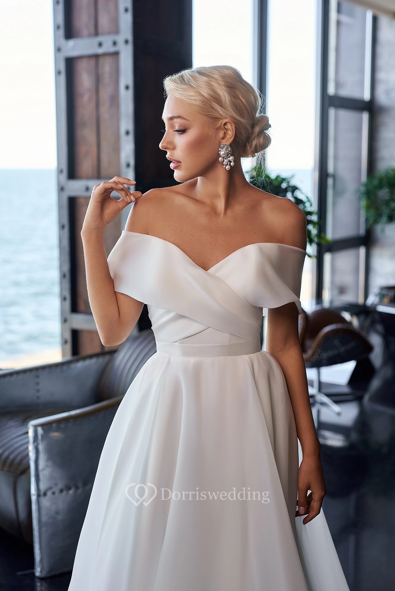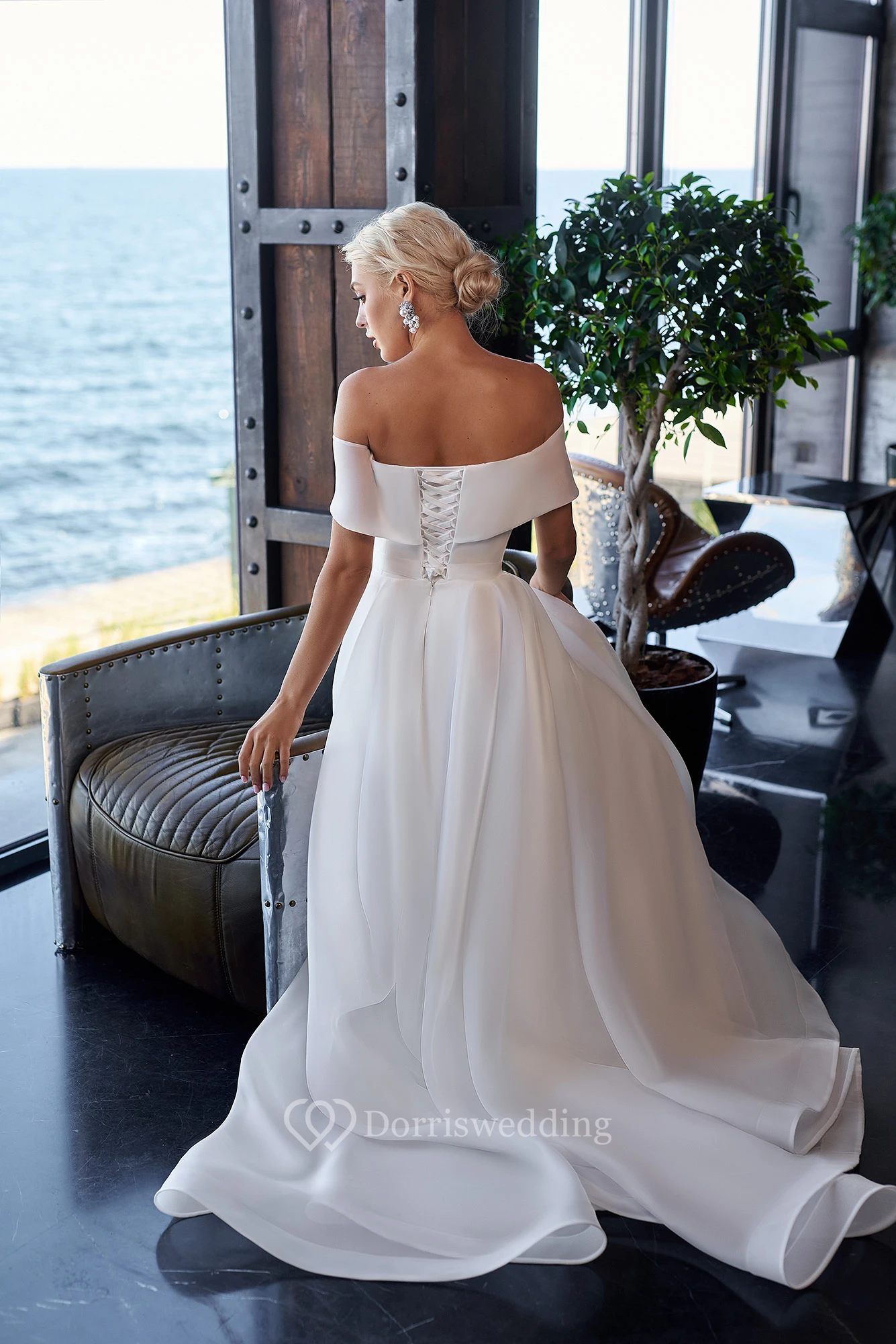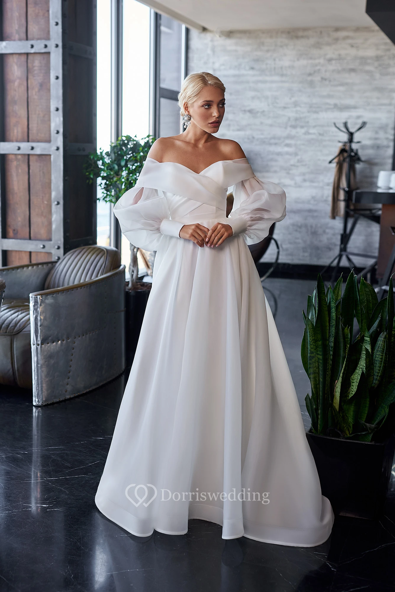 A-line Puff-long-sleeve Empire Simple Criss-cross Wedding Dress