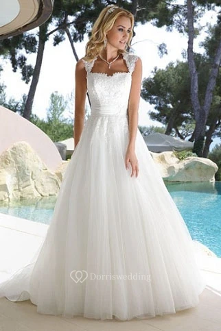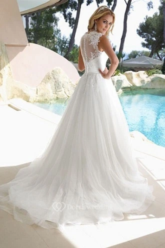 A-Line Queen Anne Tulle Wedding Dress With Illusion