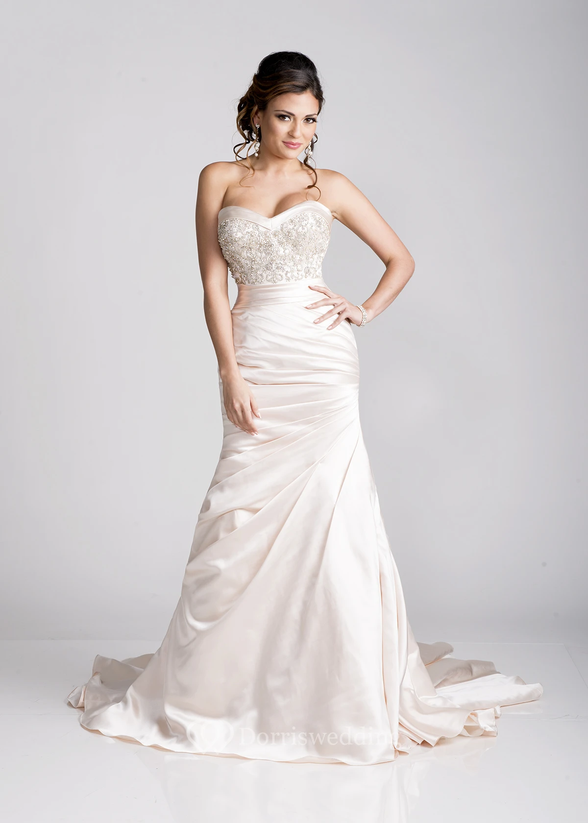 • Embellishments: Side Draping, Beading