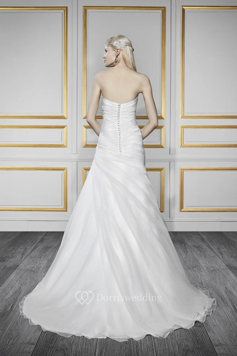 A-Line Ruched Sweetheart Organza Wedding Dress With Side Draping