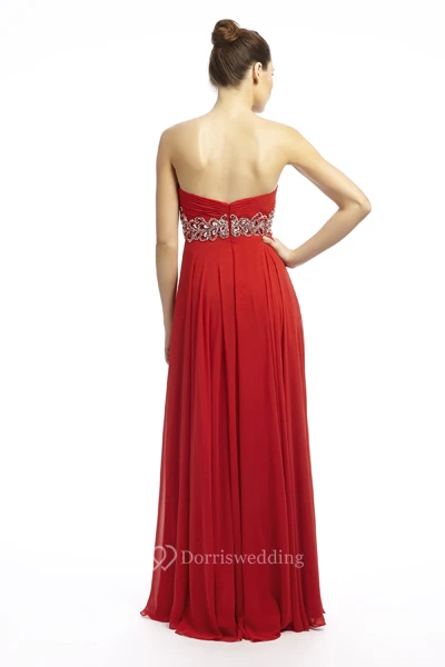 A-Line Ruched Sweetheart Sleeveless Maxi Empire Chiffon Prom Dress With Beading