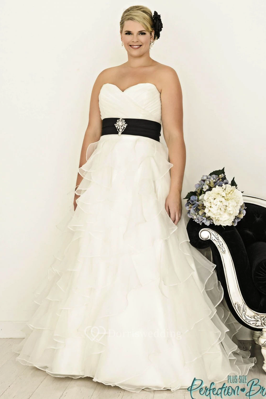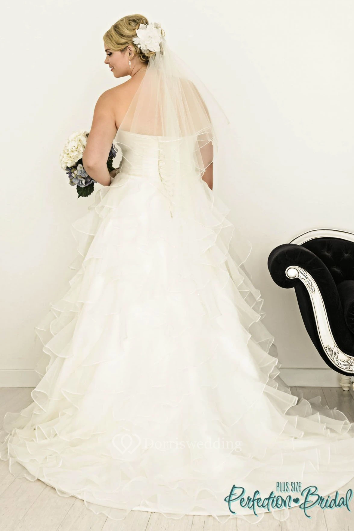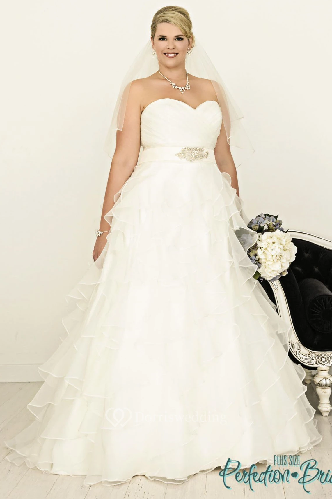 A-Line Ruffled Sweetheart Floor-Length Organza Plus Size Wedding Dress Styles With Criss Cross And Tiers