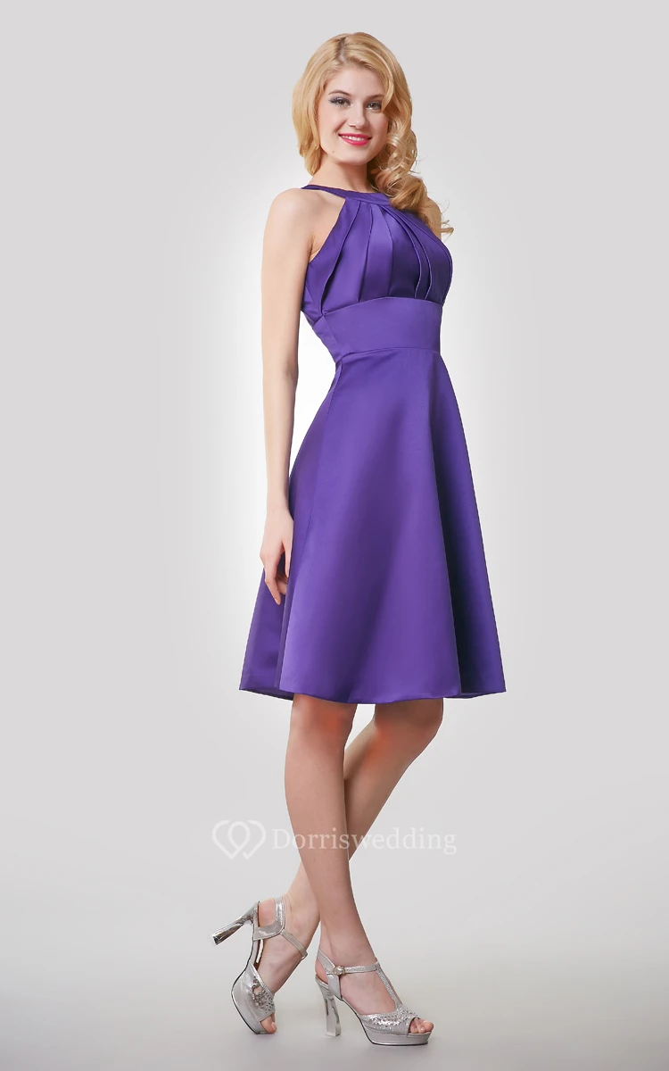A-Line Satin Knee Length Dress With Keyhole Back and Ruching