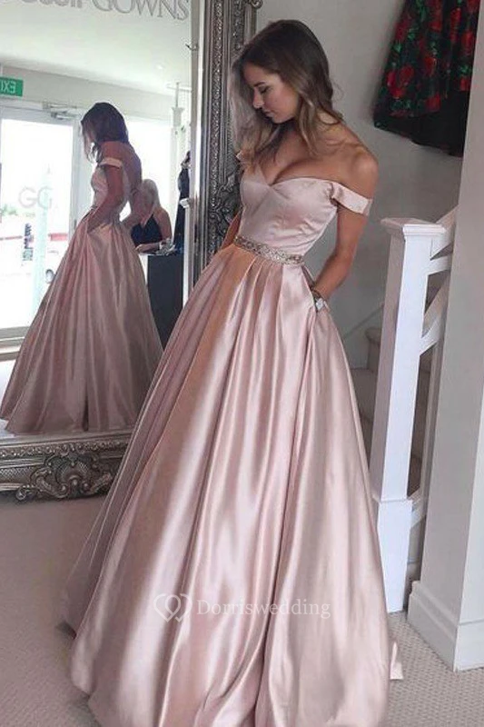 A-Line Satin Off-the-shoulder Short Sleeve Zipper Dress