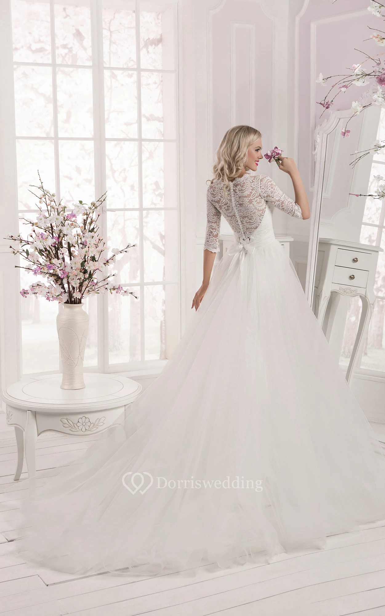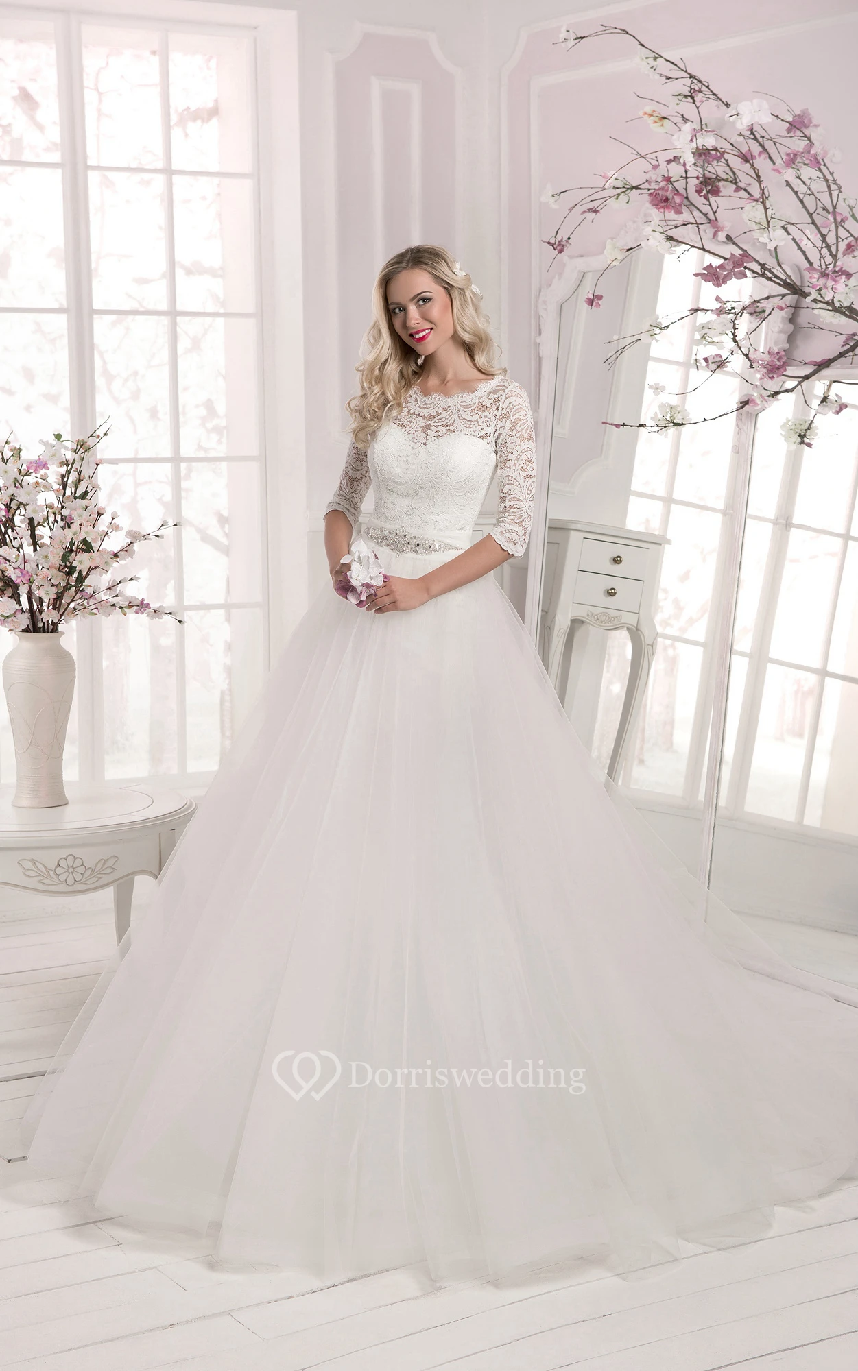 • Hemline/Train: Floor-length