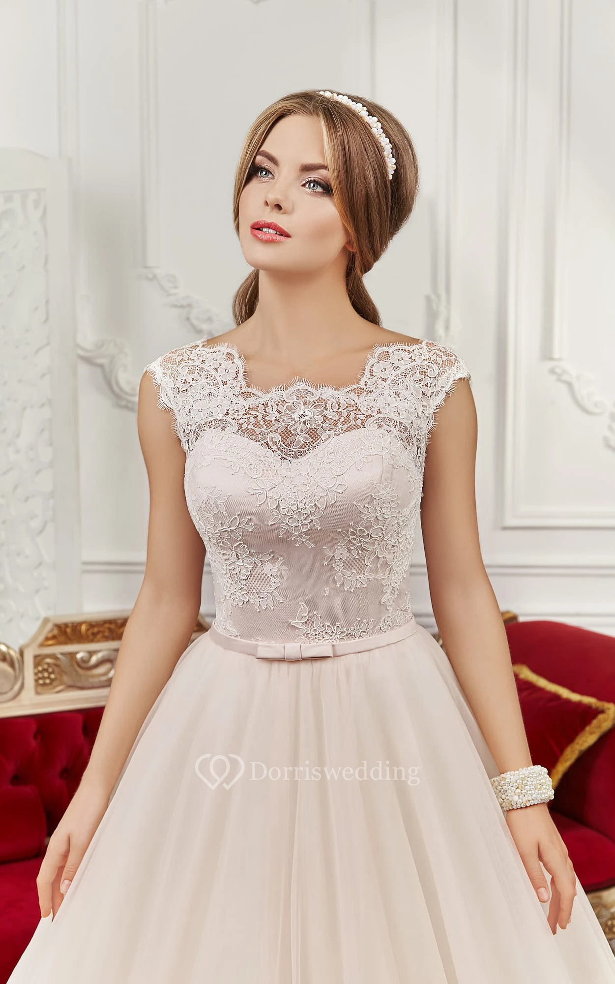 A-line Scalloped Neckline Sleeveless V Back Dress With Bow