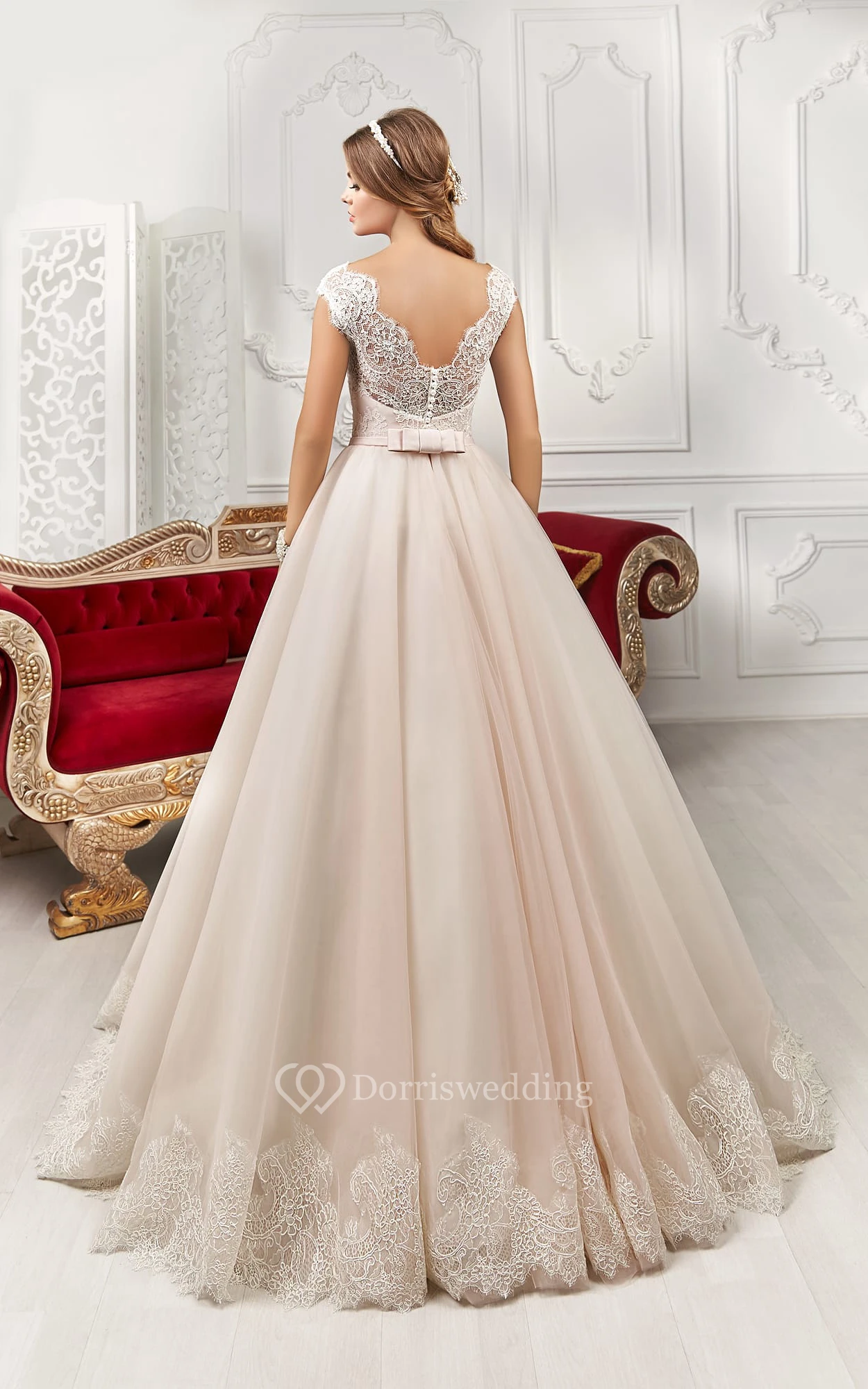 • Hemline/Train: Floor-length, Sweep/Brush Train