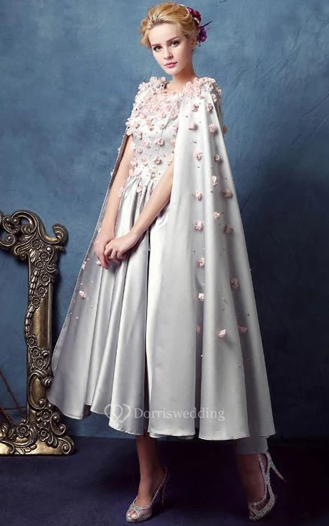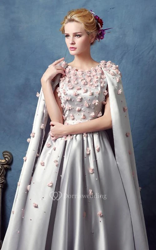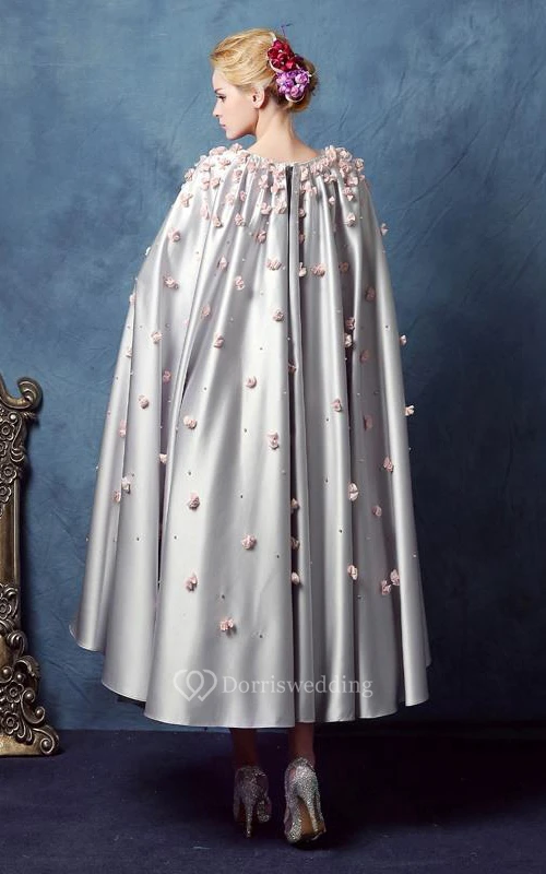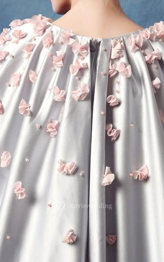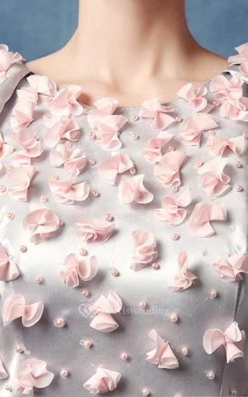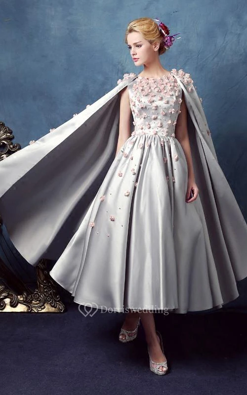 A-Line Scoop Beading Flowers Tea-Length Prom Dress