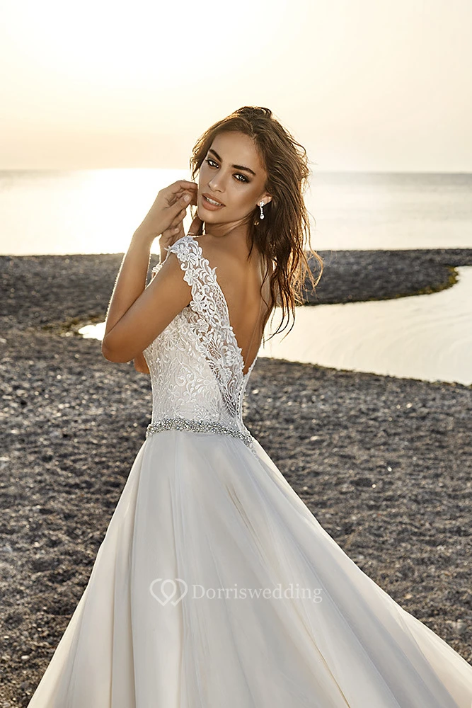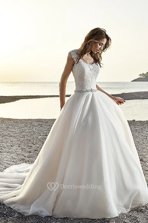A-Line Scoop-Neck Floor-Length Appliqued Sleeveless Wedding Dress With Waist Jewellery