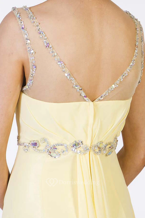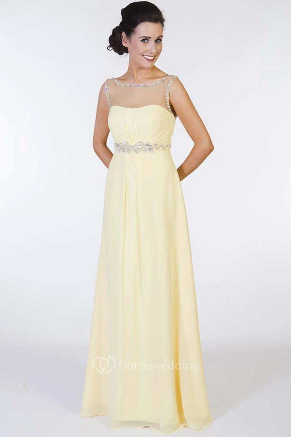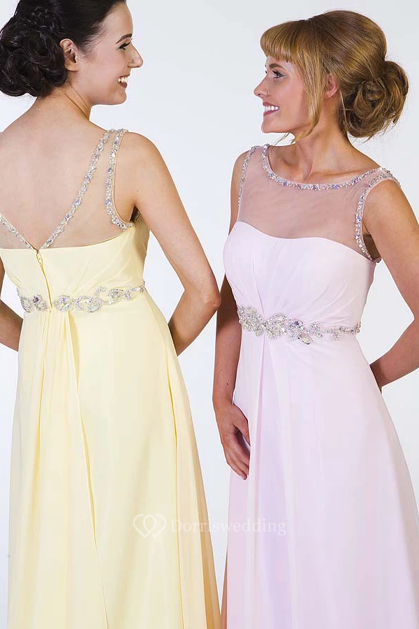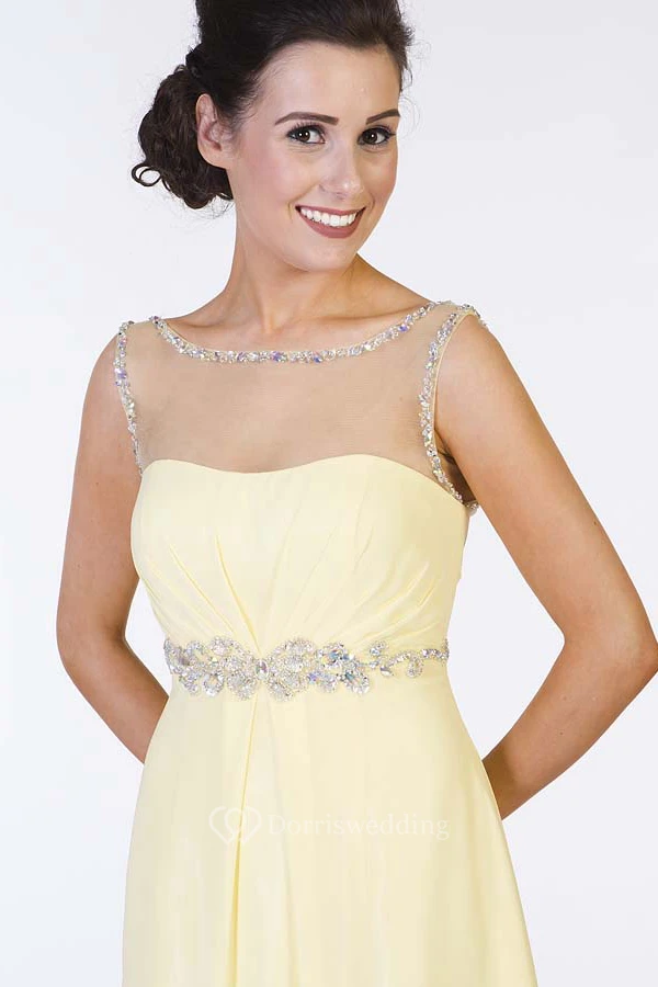 A-Line Scoop-Neck Floor-Length Sleeveless Beaded Chiffon Prom Dress With Waist Jewellery