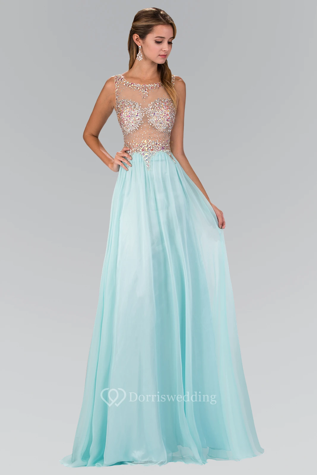 A-Line Scoop-Neck Sleeveless Chiffon Dress With Beading And Pleats