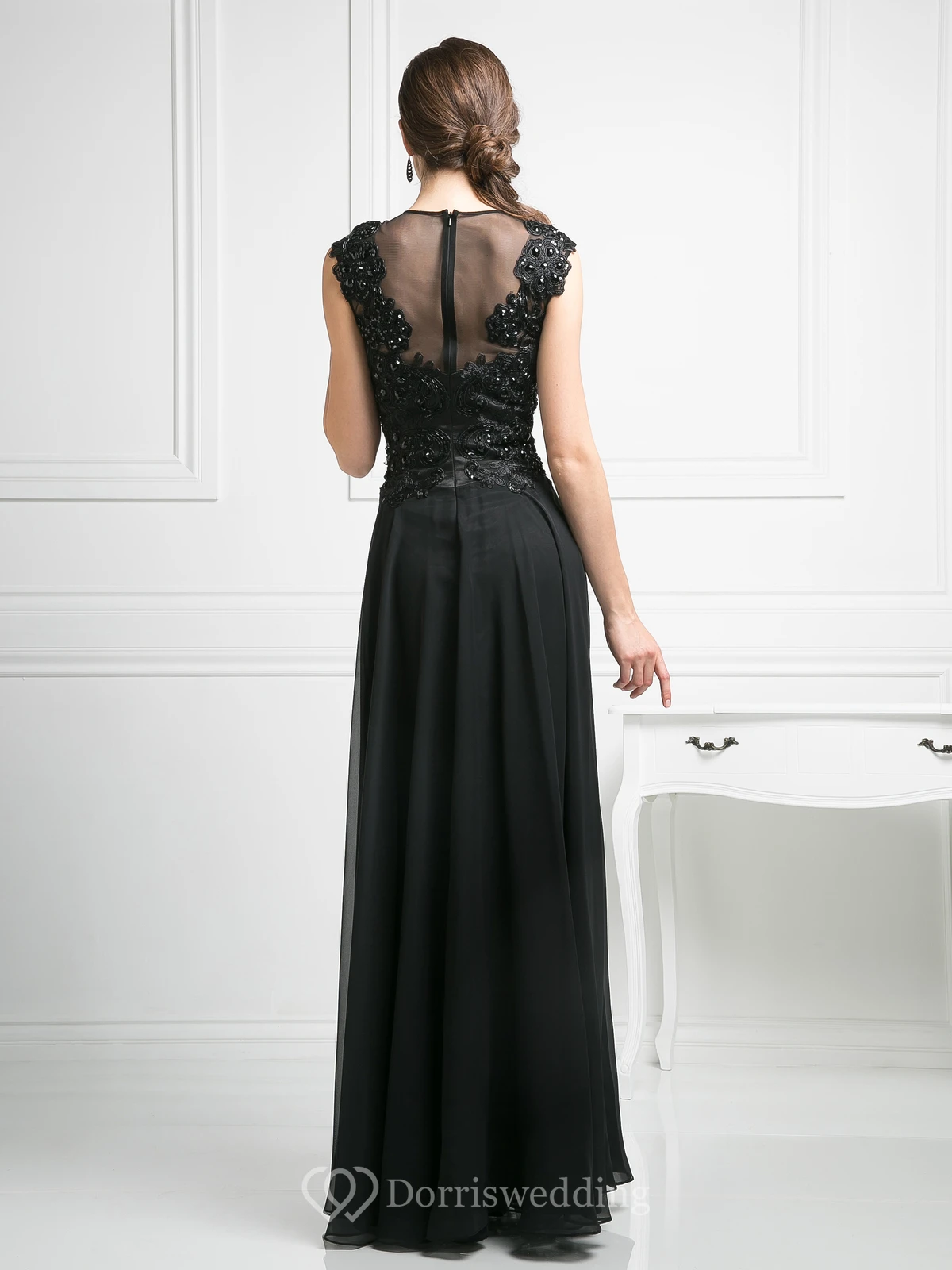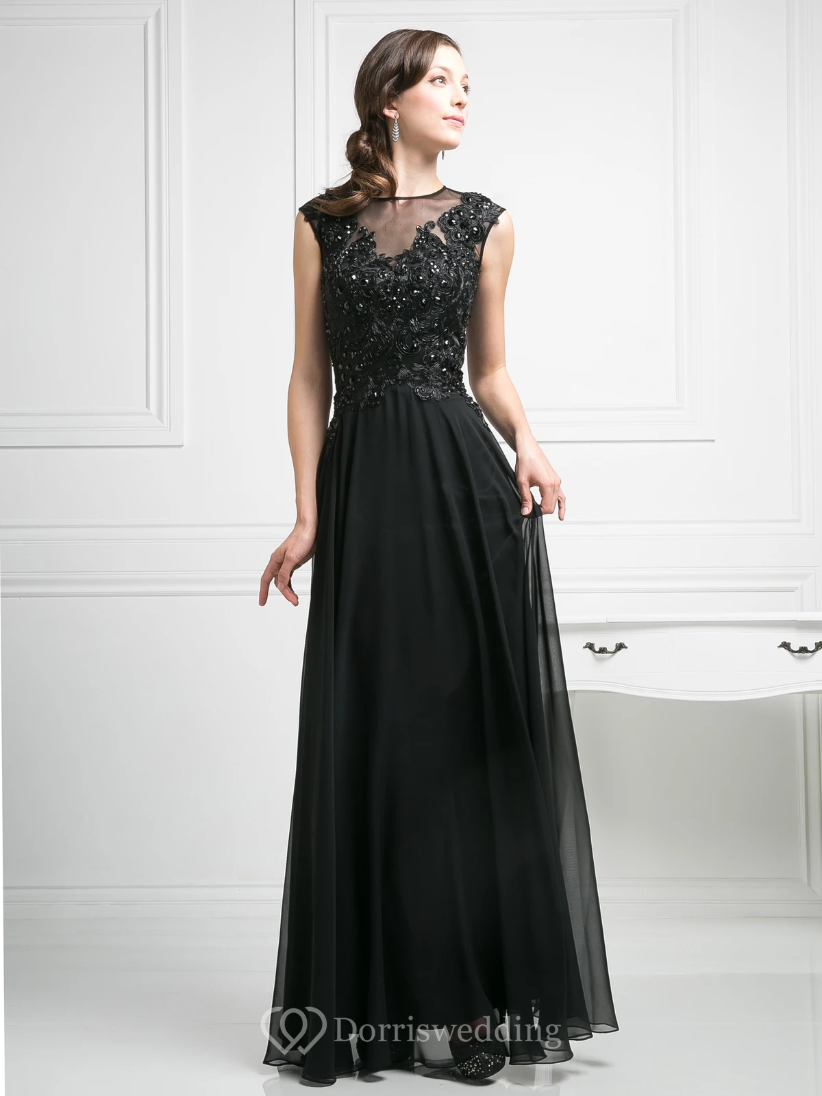 A-Line Scoop-Neck Sleeveless Chiffon Illusion Dress With Appliques