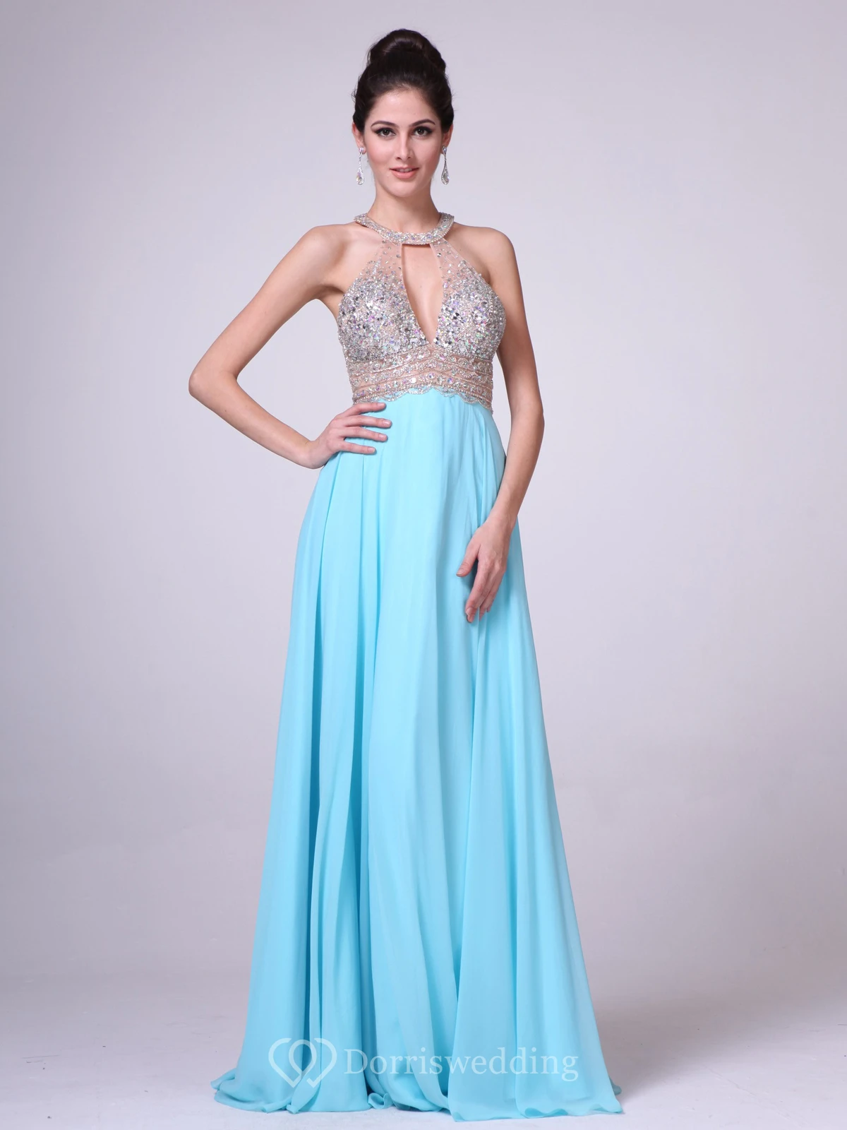 A-Line Scoop-Neck Sleeveless Empire Chiffon Keyhole Dress With Beading