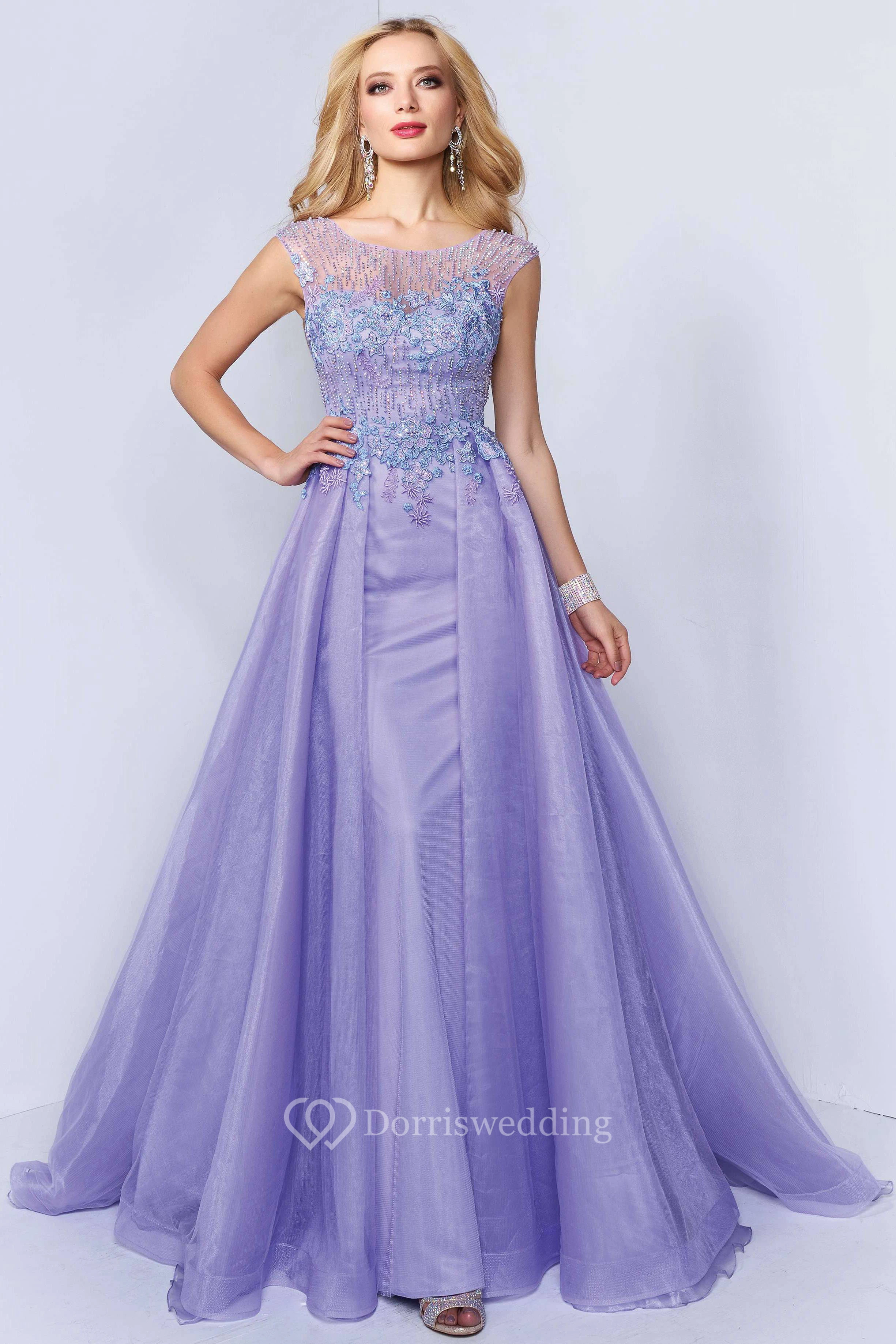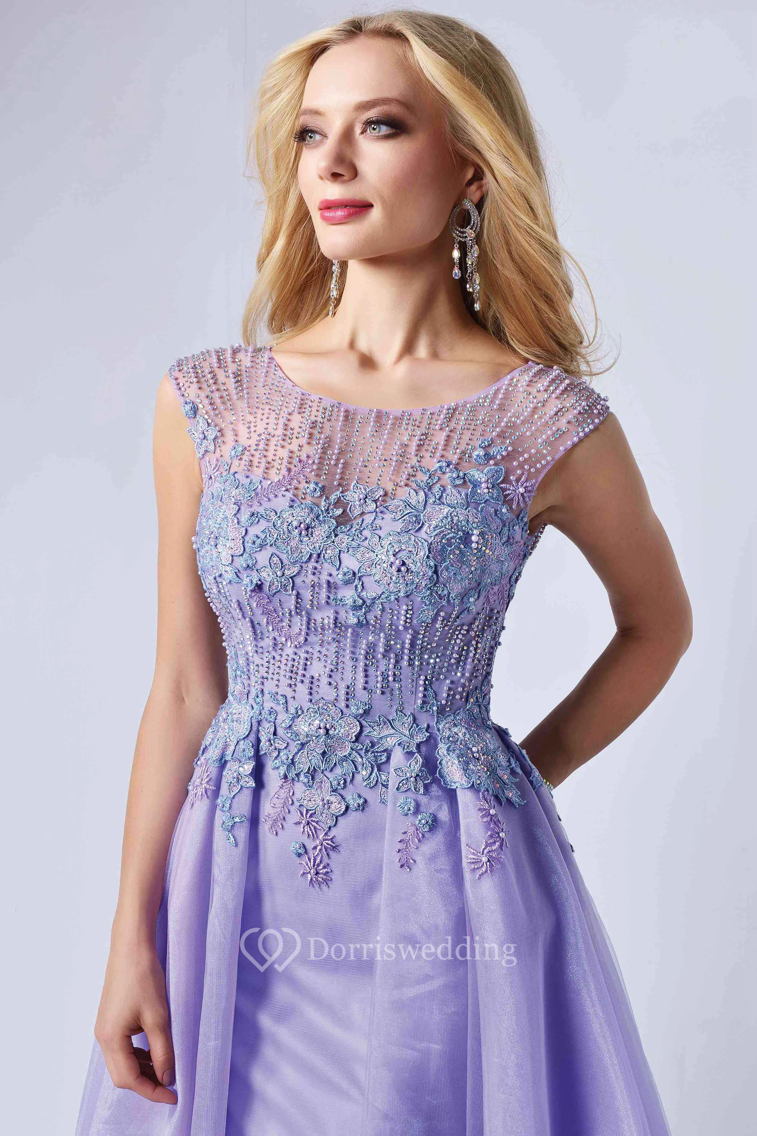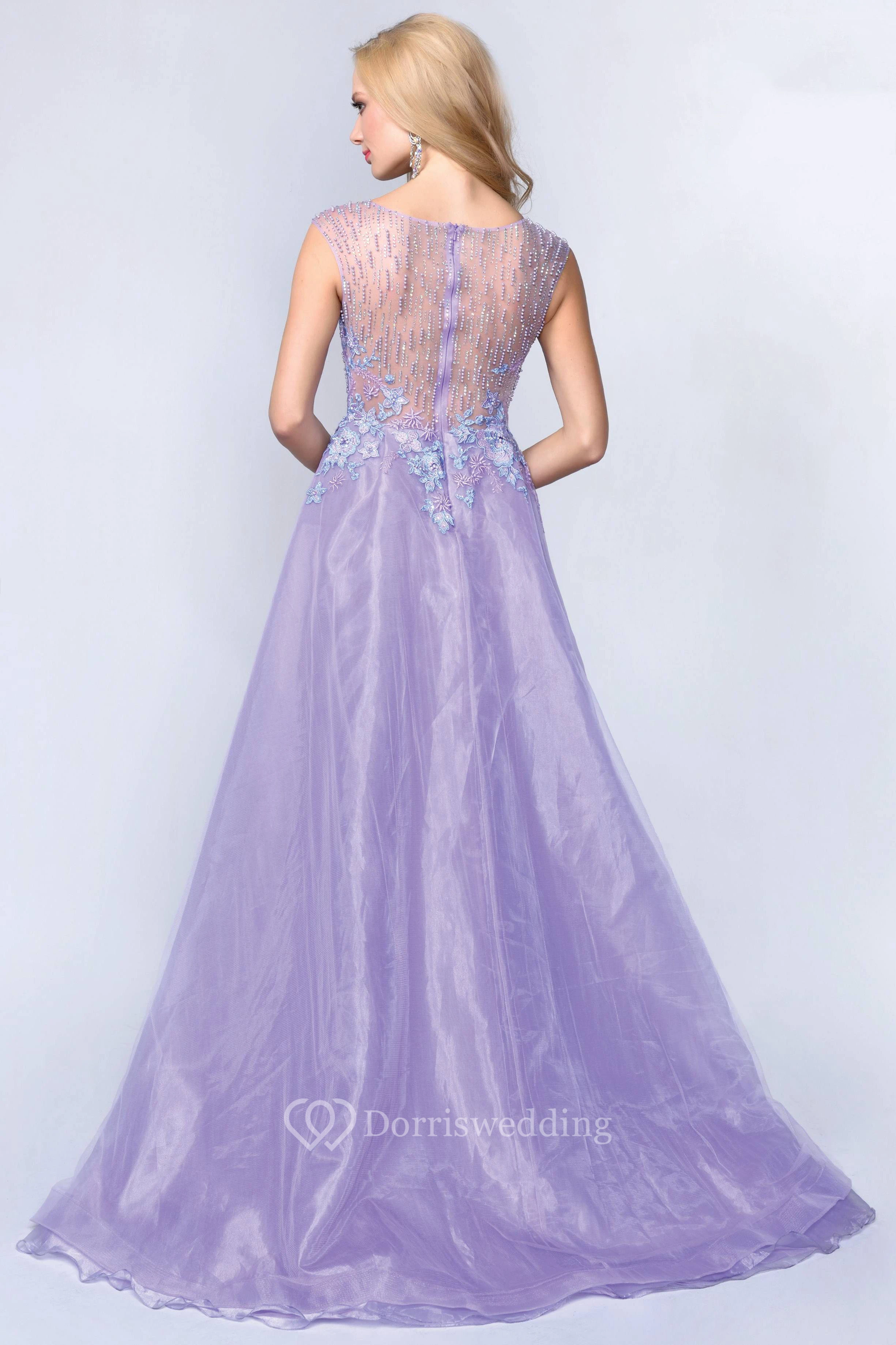 A-Line Scoop-Neck Sleeveless Illusion Dress With Beading And Appliques