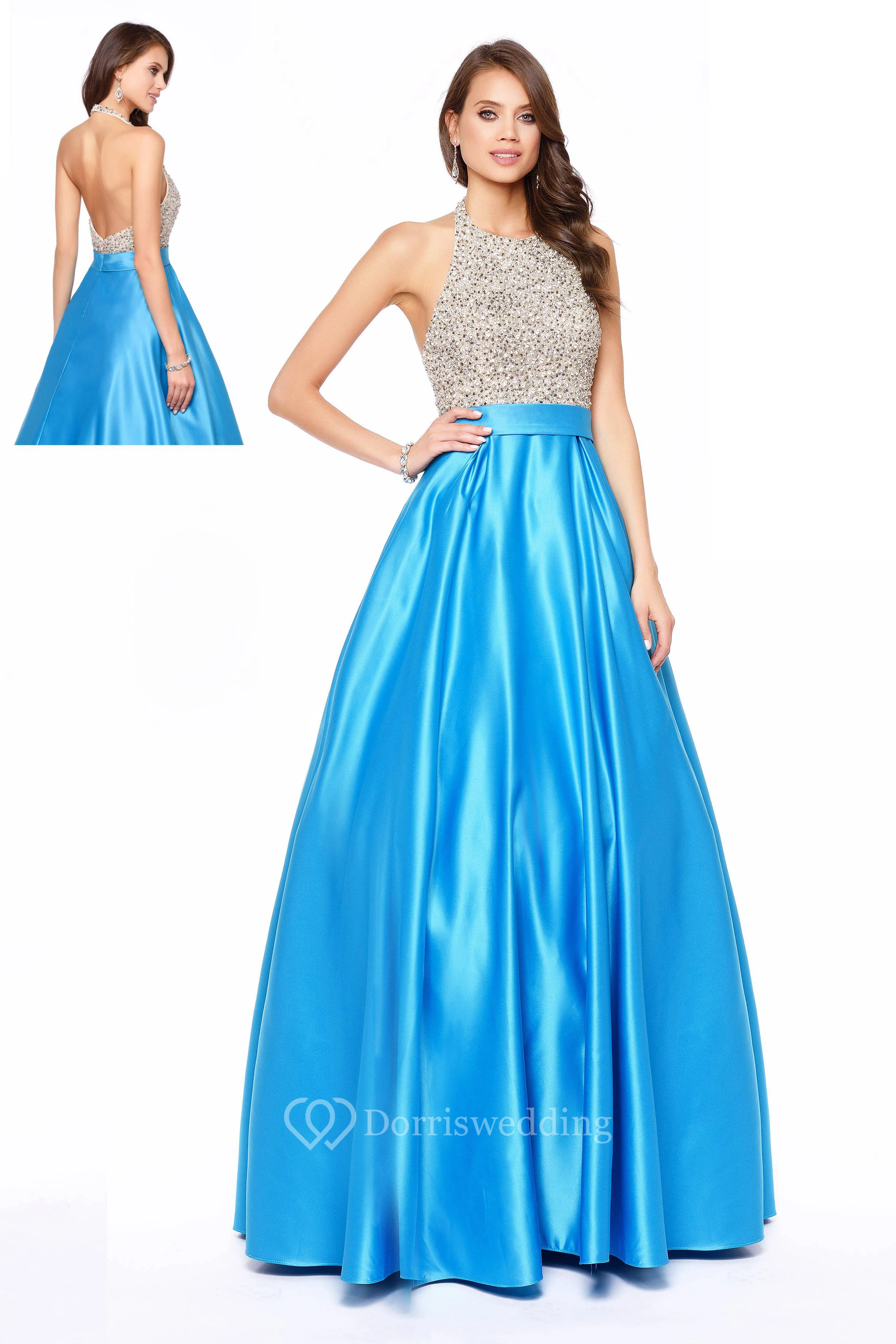 A-Line Scoop-Neck Sleeveless Satin Backless Dress With Beading