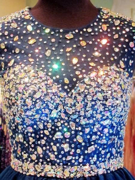 A-line Scoop Sleeveless Rhinestone Short Tulle Dresses