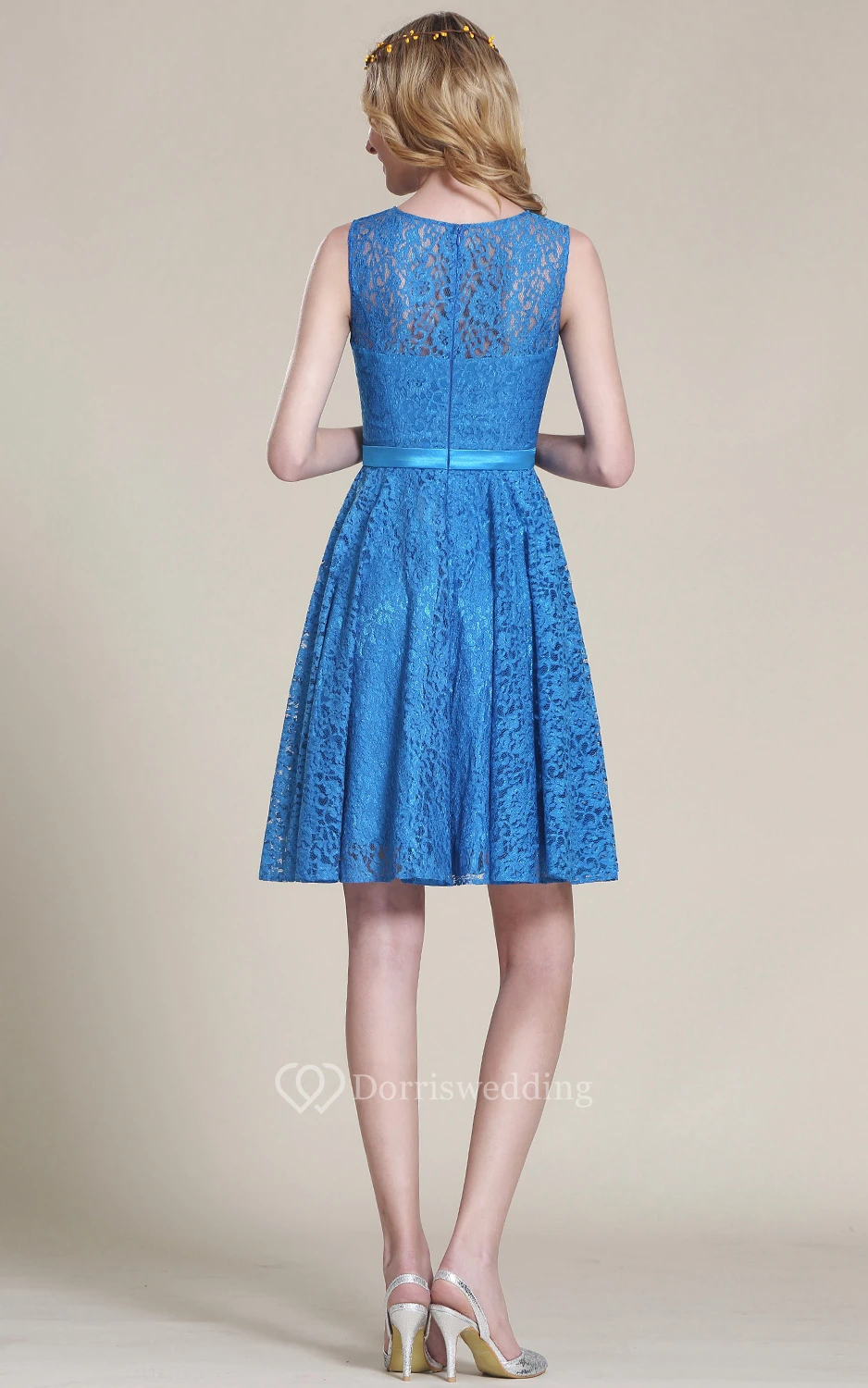 A-Line Short Bateau Sleeveless Lace Lace Zipper Dress